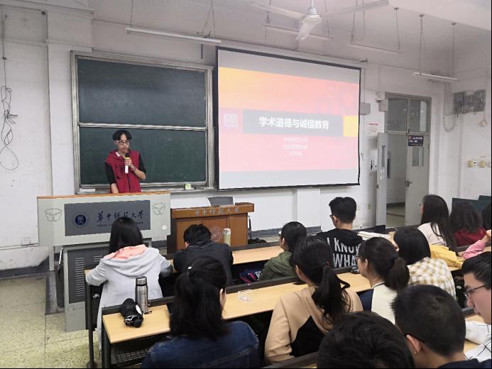 晚点名第三项是由2018级的李文浚同学讲解有关于学术道德的相关知识,包括概念、重要性、相关性等,引用了“翟天临学术门”等一系列国内外的相关案例,并结合我们当前各高校出台的相应政策,强调了国家对诚信教育和学术规范的重视性和严肃性。他提到,学术道德是指进行学术研究时遵守的准则和规范,是治学的起码要求,作为新时代青年,我们应当对自己的未来负责,遵守学术道德规范,踏实学习,诚信做人。