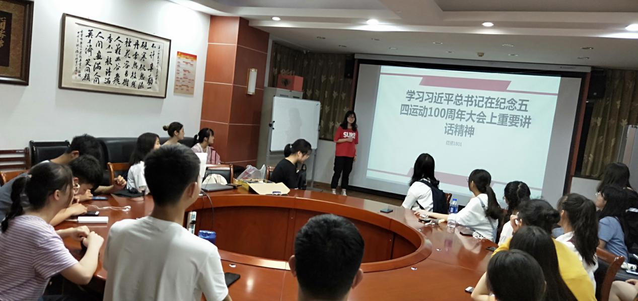 19日晚八点,1801团支部全体成员于九号楼921教室集合。共同认真学习习近平总书记纪念五四运动100周年大会的重要讲话,学习到了“当代青年要担当时代责任,勇立时代潮头,争做时代先锋”等内容。同时,新时代中国青年要勇于砥砺奋斗,积极拥抱新时代、奋进新时代的坚定信心。