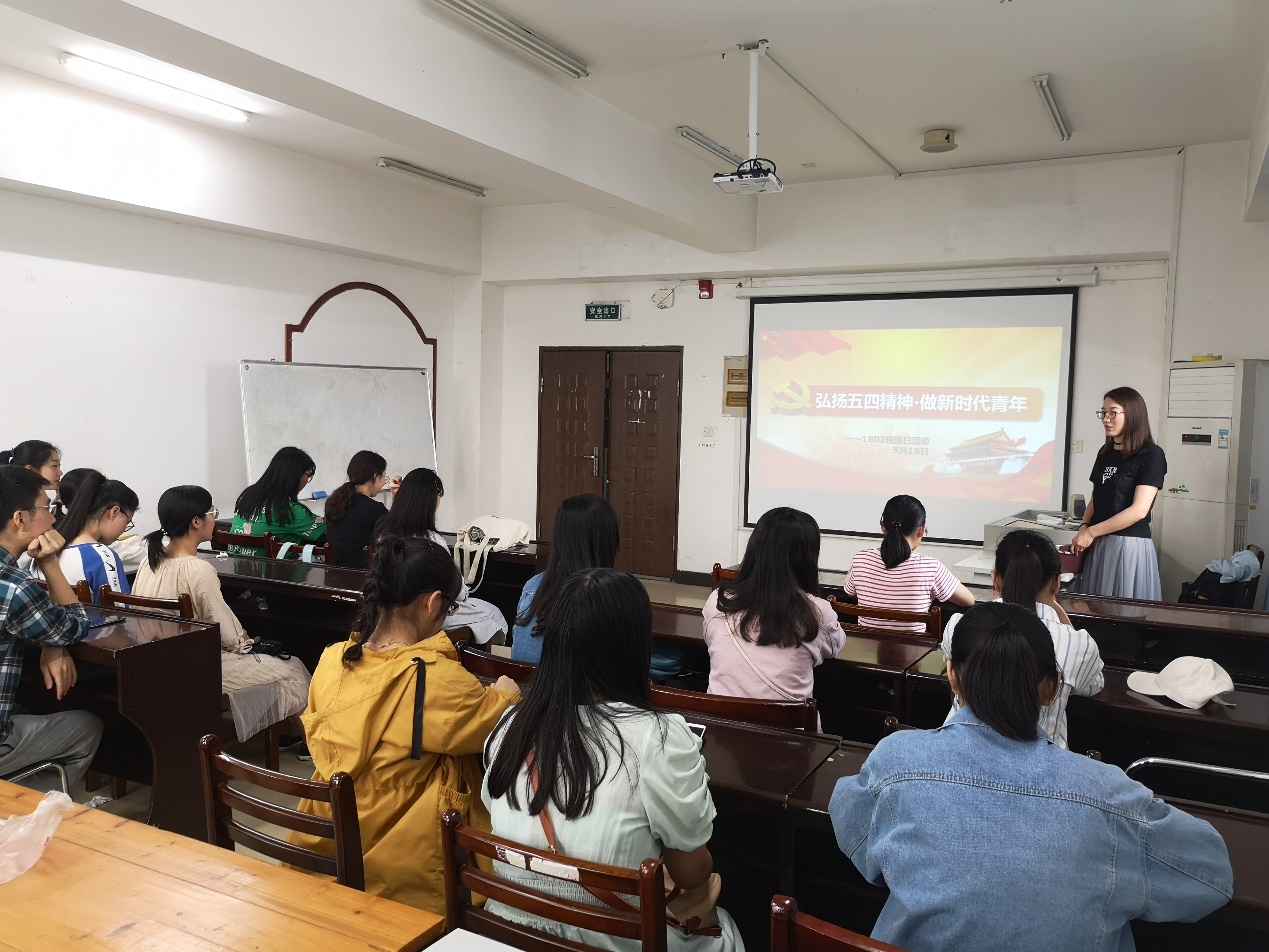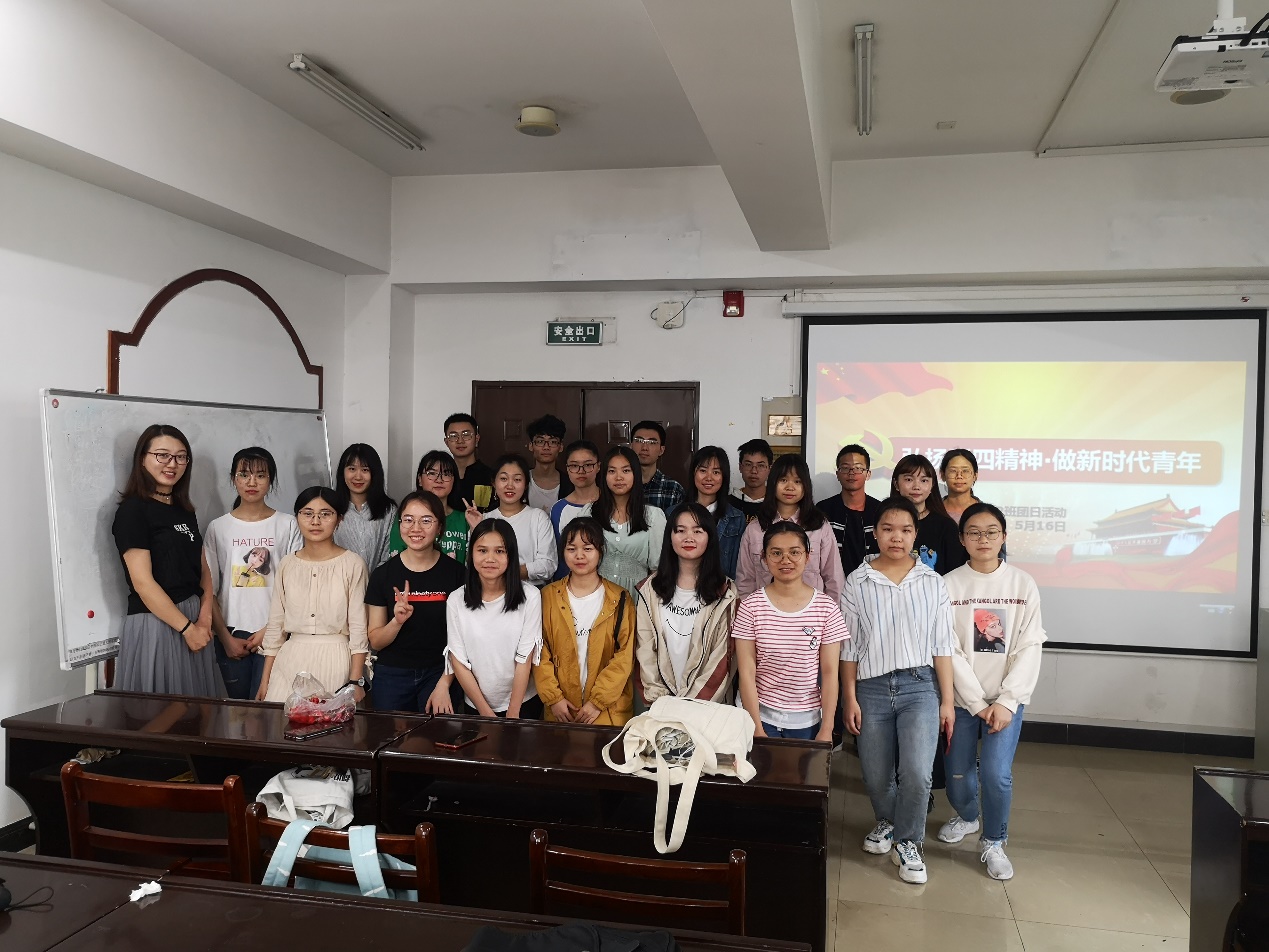 (通讯员 王贞俨)为了纪念五四运动100周年,更好地认识爱国主义,学会用切实行动来实践爱国主义,信息管理学院电商1802班团支部在五月举行了“弘扬五四精神,做新时代青年”的主题团日活动,活动内容是进行五四爱国运动的历史事件和五四精神的深入学习与实践。支部特邀信息管理学院2018级辅导员肖丽霞老师参加本次活动。