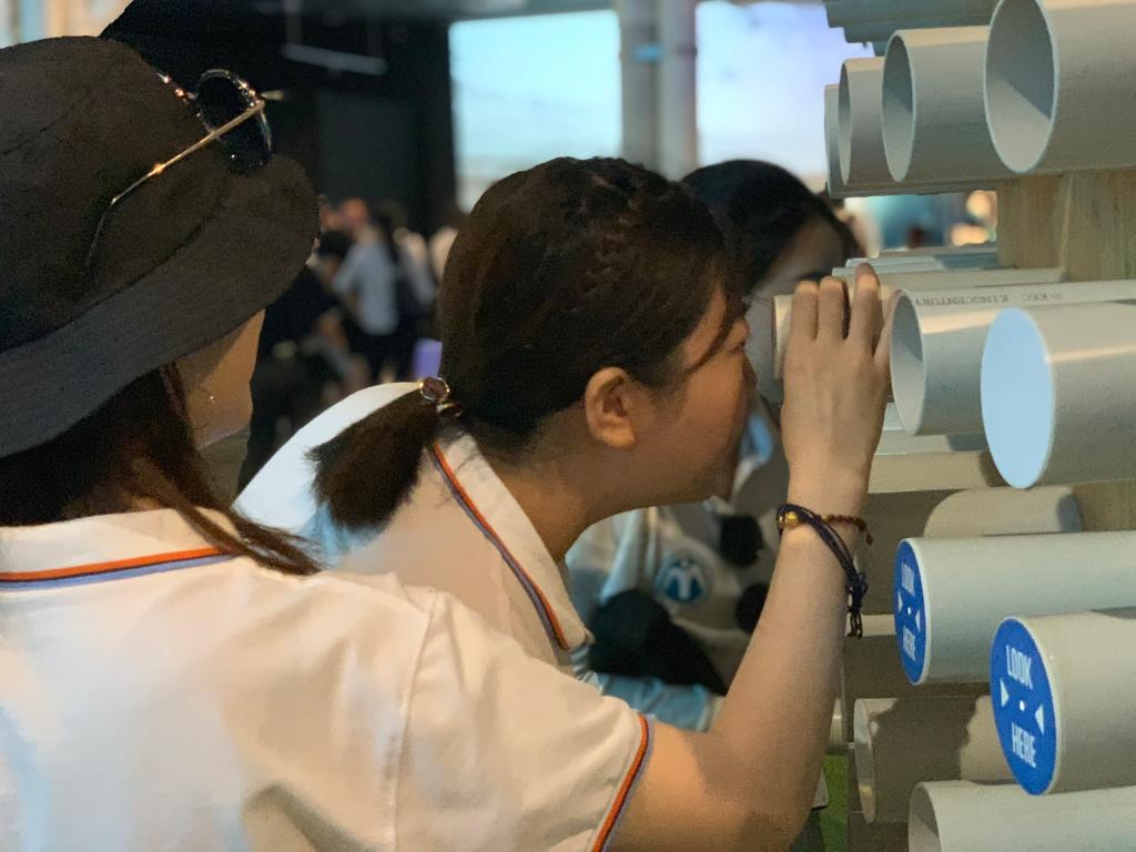 实践队队员们在讲解员的带领下,实地参观新生水生产厂区,了解一瓶新生水诞生的过程。通过三步递进式的分子级别的过滤流程,辅以紫外线杀菌技术,水体净化设备能够将每一滴水都净化到饮用水平。队员们跟随讲解员在厂区中穿行,近距离参观每一步净化流程所用的设备。在赞叹于新加坡先进的水净化技术的同时,队员们也深深感受到了水资源的来之不易。