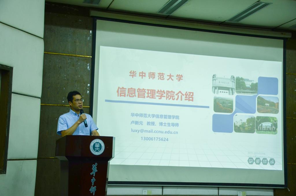 见面会伊始,肖丽霞向各位新生及家长做了简单的自我介绍,并欢迎新生加入信管大家庭。随后,卢新元院长为大会致欢迎辞,他代表信息管理学院全体师生对2019级新生表示了热烈欢迎。接着,他从办学历史、师资力量、学科平台、组织结构、文体活动等方面向19级学生详细介绍学院状况,以帮助新生更好了解学院,适应大学生活。同时他对新生提出新起点、管自己、全面发展的三个期望。