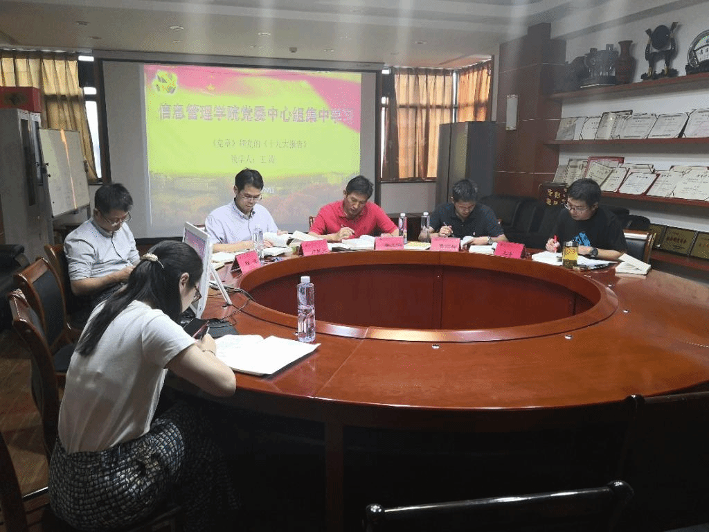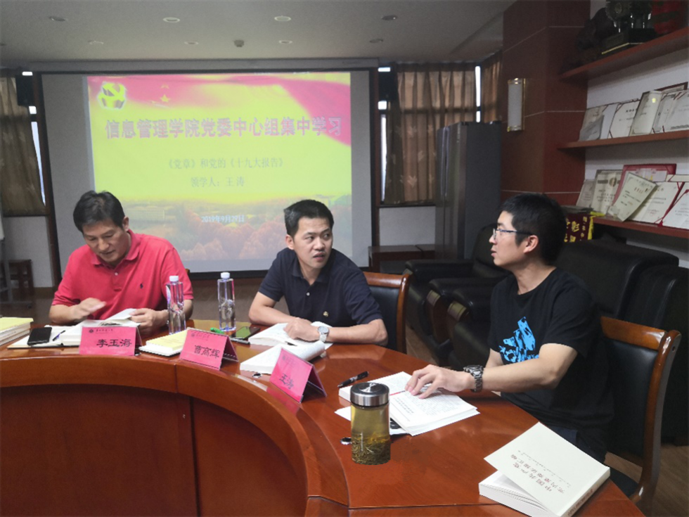 根据校党委的要求和信息管理学院分党委的工作安排,2019年9月29日下午,学院党委中心组成员在九号楼921会议室进行了“不忘初心,牢记使命”主题教育第二次集中“领学”。本次会议由院党委副书记王涛主持学习并“领学”,学院领导班子等成员参加了本次学习。