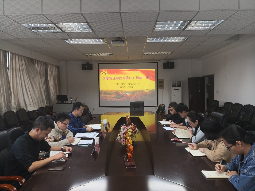 根据校党委的要求和信息管理学院分党委的工作安排,2019年10月15日下午,学院党委中心组成员在九号楼918会议室进行了“不忘初心,牢记使命”主题教育第二次集中“领悟”。本次会议由副院长卢新元主持学习并“领悟”,学院领导班子以及部分支部书记参加了本次学习。