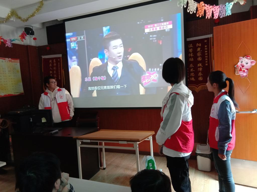 志愿者到达阳光家园时,残疾人朋友在做健身操。热身完毕,志愿者做了简单的自我介绍。活动正式开始,志愿者以PPT的形式开始宣讲网络防骗。PPT由主题影片和真实案例两部分组成,两名志愿者在一旁负责讲解,以提高残疾人朋友的防诈骗意识。主题影片都是一些诙谐幽默的短视频,让残疾人朋友在轻松欢快的氛围里学习到网络防骗的知识。