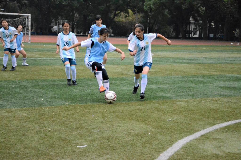 上半场上半部分双方队员们都斗志昂扬,拼劲十足,互不相让。我方14号守门员周小渲凭借敏捷的身手,多次将球拦在门外,化解了危机。