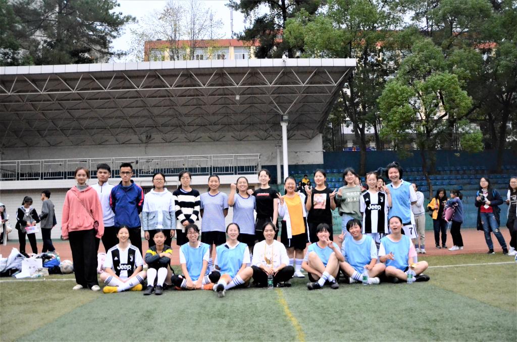 比赛开始前,女足教练员向队员们强调了有关比赛技巧和安全的问题,并指导队员们进行了抬腿、传球等热身训练。球员们喊着“信管,加油!”的口号,为自己加油打气。随后,主裁判吹响了比赛正式开始的哨声。
