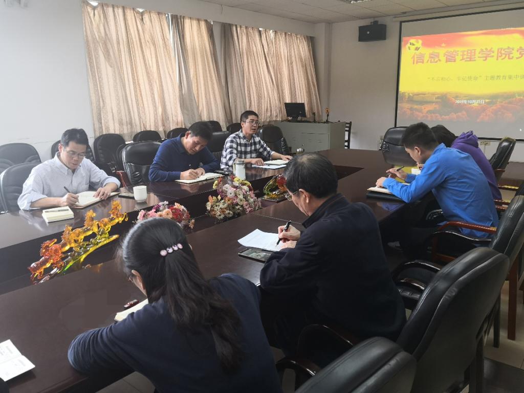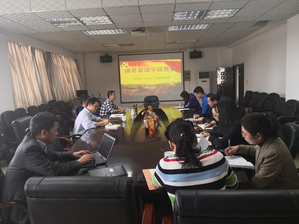 (通讯员 孙裕彤)根据校党委的要求和信息管理学院分党委的工作安排,2019年10月31日下午3点,学院党委中心组成员在九号楼918会议室进行了“不忘初心,牢记使命”主题教育集中调研。本次会议由院党委副书记王涛主持,学院中心组成员、各行政办公室教师参加了本次集中调研活动。