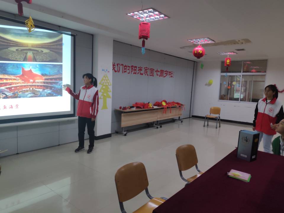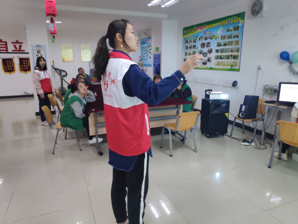 志愿者到达中南路阳光家园,经过十分钟的准备后,以展示福建南音乐器的图片拉开了此次志愿活动的序幕。接着,为了让大家更好地了解福建南音,志愿者为残疾人朋友分享《南音缭绕》的动画视频,让大家更好地感受福建南音的魅力,同时动画形式的视频也更能提起他们的兴趣。接着志愿者又以展示《大鱼海棠》中的土楼为引介绍了福建土楼,效果甚好,看到《大鱼海棠》的剧照,大家瞬间对土楼有了外观上的了解,紧接着连续几组福建当地土楼的照片冲击再配上志愿者的详细讲解,残疾人朋友对福建土楼的了解进一步加深。