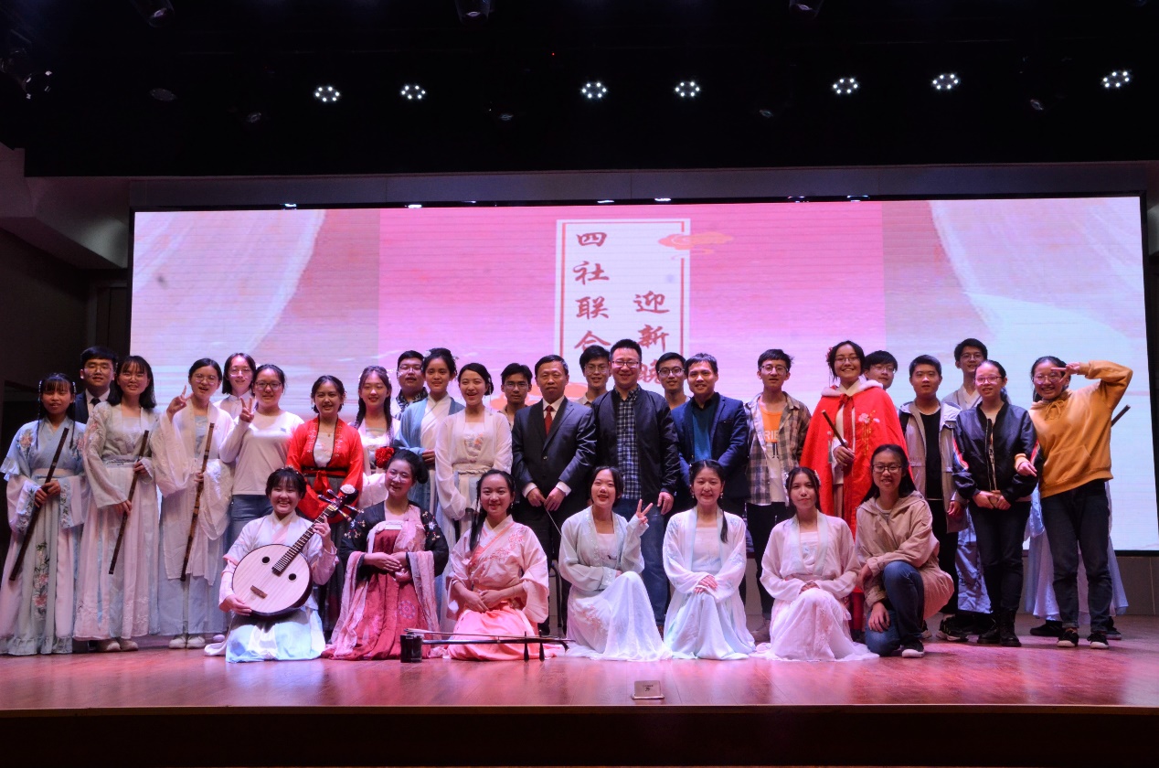 (通讯员:郭宇凡 李桃 王洲 徐琳琳 张宇航)11月9日晚,四社迎新晚会在大学生活动中心五楼活顺利展开。本次晚会由阮艺协会、笛箫协会、二胡协会与卿衣汉服社联合举办,信息管理学院协办。莅临本次晚会的嘉宾有信息管理学院院长、党委副书记李玉海、党委副书记王涛、社团指导老师娄策群教授、团委书记穆帆、笛箫协会第七届会长金海峰和信息管理学院社团联合部部长倪嘉蔚。