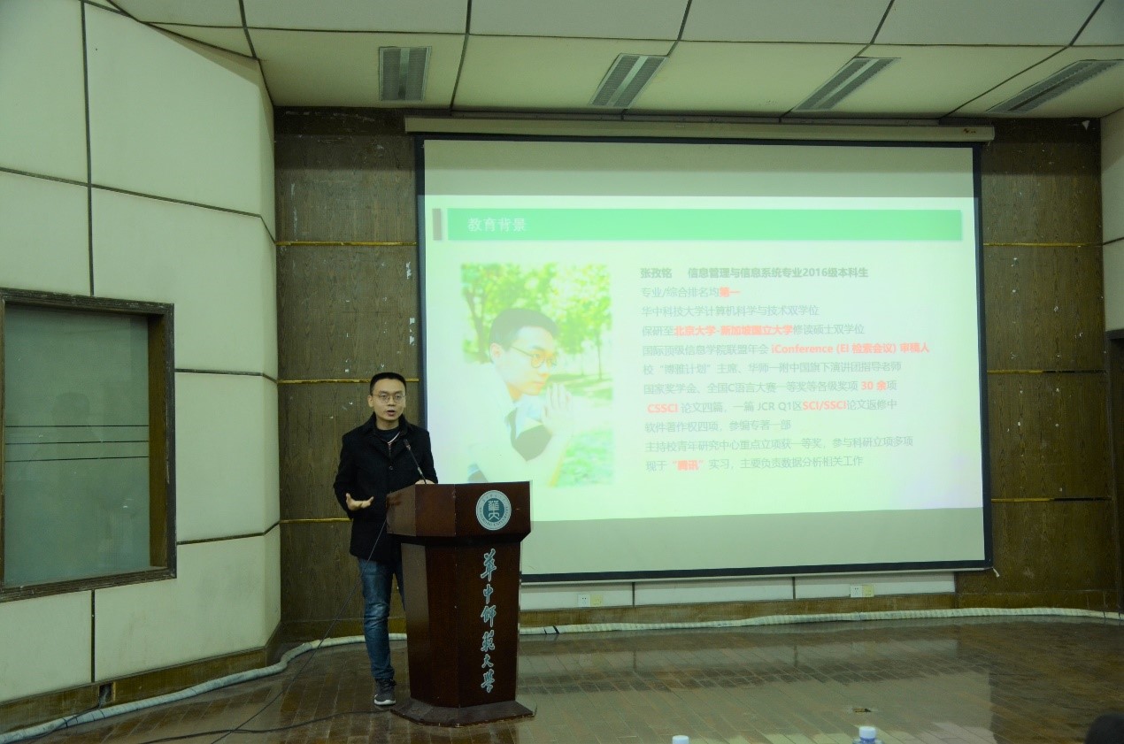 (通讯员 徐琳琳 谭艳卉)11月24日下午,华中师范大学信息管理学院“E技之长,逐梦远航”新生分享会在九号楼一楼报告厅顺利举行。信息管理与信息系统系主任董庆兴、电子商务系主任池毛毛,信息管理学院团委书记穆帆、夏南强、王光超,张珺、王晓等老师以及各主讲嘉宾出席分享会。信息管理学院全体2019级新生参与本次新生分享会。分享会由李昀洋主持。