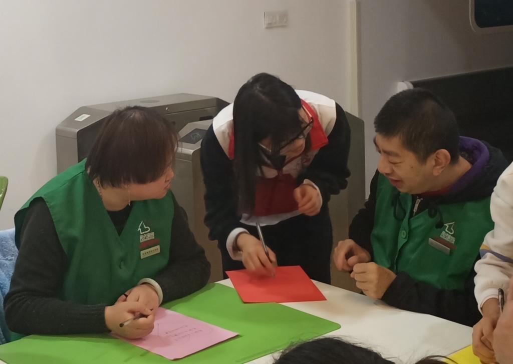 今天的志愿活动在拍完合照后就正式结束了。室外是凌冽的寒风,室内却是暖暖的温度。这份暖,不仅限于温度,更在于志愿者们和残疾人朋友间融洽而亲密的关系。那份感恩信上,也许今天只有他们爸爸妈妈的名字,但是在不远的将来,华信服务队的名字或许也会出现吧。期待能有更多的人加入志愿者行列,在这个寒冷的冬日里,为残疾人朋友们的生活再添上一抹阳光。