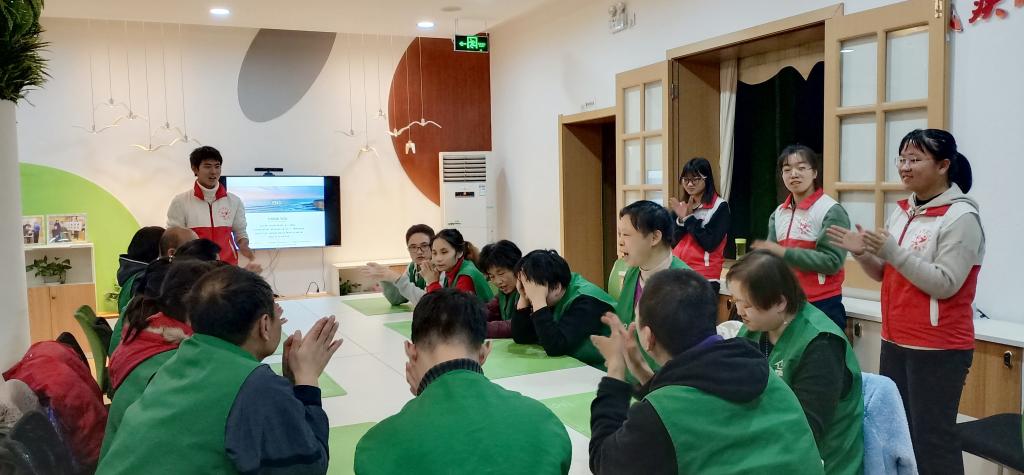 游戏结束,志愿者江梦婷和颜真珍又对感恩节进行了介绍,志愿者江梦婷还联系了中国的传统节日来进行相关讲解,让残疾人朋友们在感受西方文化的同时,又回顾了中国的传统文化。在活动的最后,志愿者们安排了让残疾人朋友们写下感恩信的环节。残疾人朋友们在彩纸上写下了自己对想感恩之人说的话,而志愿者们则在一旁手把手地教他们在纸上画下爱心的形状。