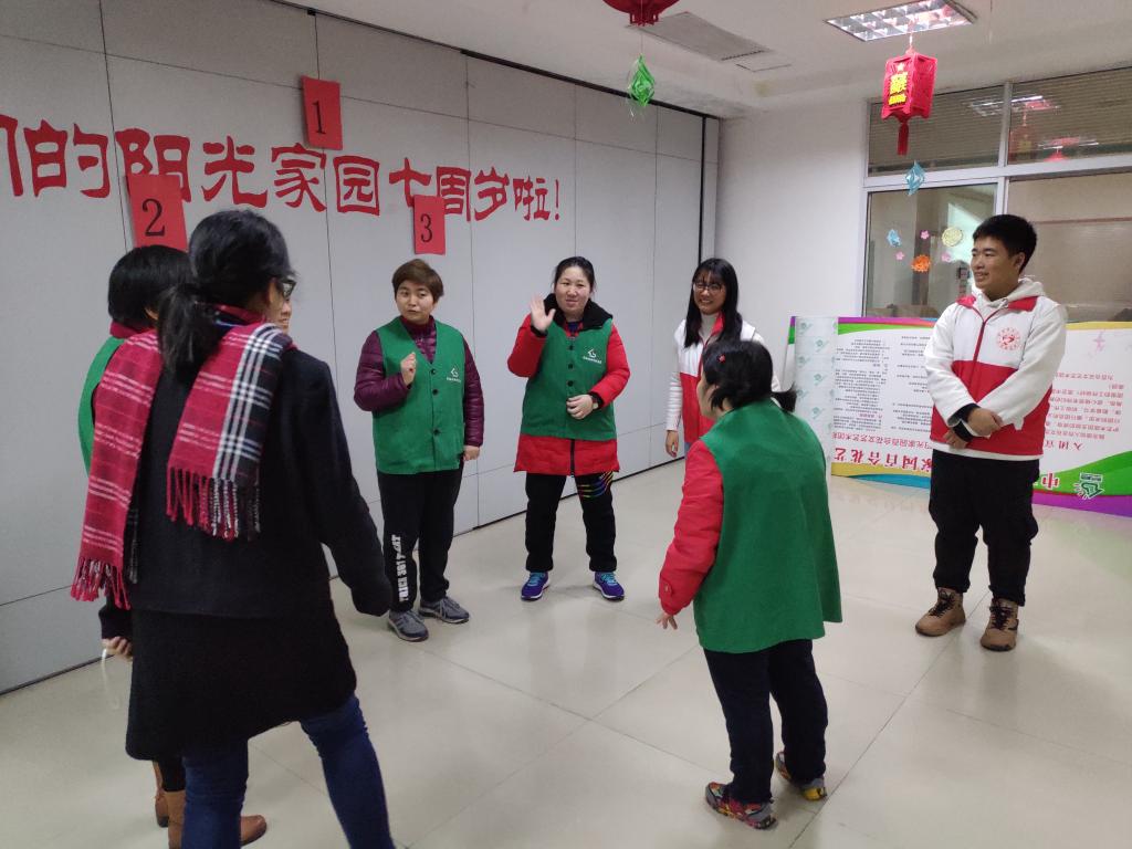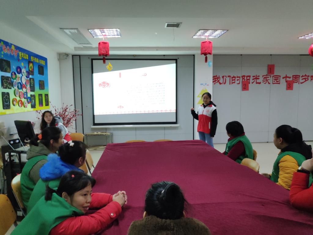 志愿者到达中南路阳光家园,经过十分钟的准备后,通过播放二人转《正月里来是新年》和东北民歌《茉莉花》将残疾人朋友带入黑龙江省,开启探索黑龙江省非物质文化遗产之路。志愿者首先为残疾人朋友介绍了冰雕,那一张张美丽的冰雕图片让所有残疾人朋友高声赞叹。接着为了让大家更好地感受冰雕之美,志愿者为残疾人朋友播放了冰雪女王《let It go》的MV,大家兴奋地沉浸在视频中出现的冰雕艺术之美中。