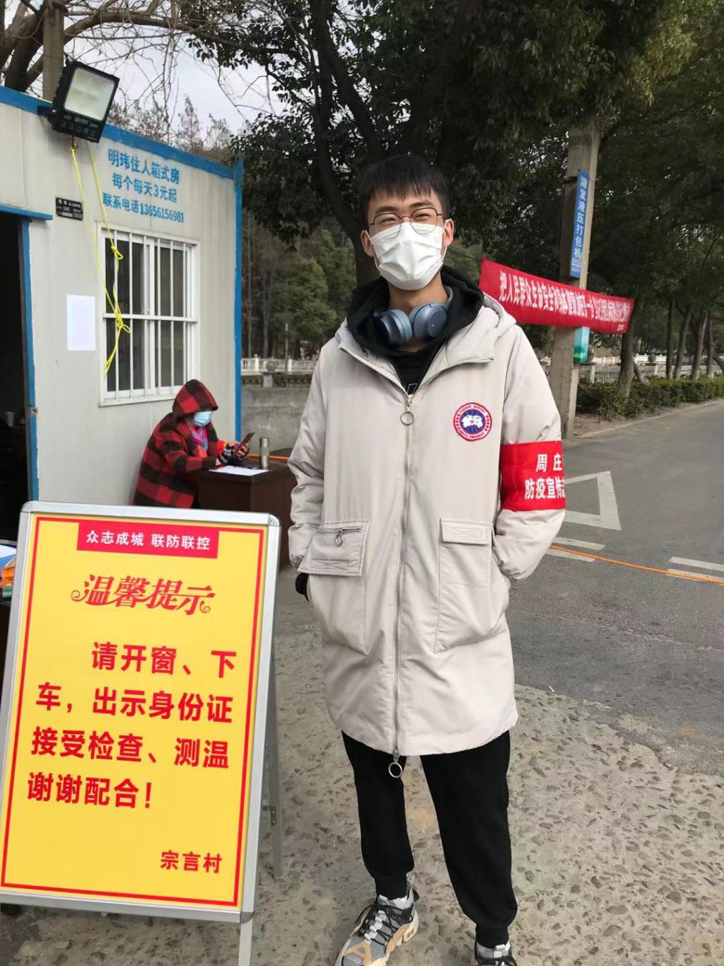 (通讯员 李雪漫)踏上了久违的家乡土地,就要像忠诚勇敢的战士一样拿起肩上的钢枪,抵抗疫病侵袭的威胁,守卫生于斯长于斯的的家园。信息管理学院17级本科生曹天伦在结束14天的返乡自我隔离后,响应号召,积极投身到村镇疫情防控工作中。乡邻们都看在眼里,昔日门前脸蛋红扑淘气顽皮的小孩儿子,如今已长成七尺男儿,那个心中有“国家”,行动顾“大家”的新青年。