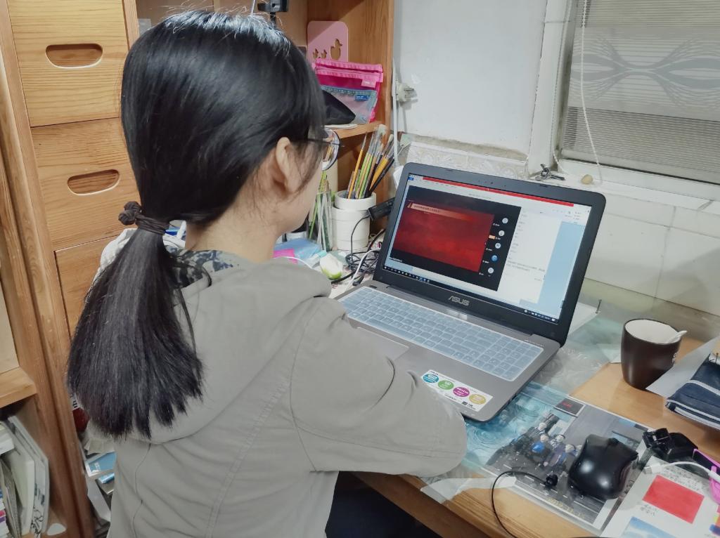 同学们全部准备就绪后,蒋导开始发言。首先蒋导向同学们问好,很安心每日看到所有同学平安健康,蒋导嘱咐同学们在家要照顾好自己和家人、积极配合当地疫情防控工作、做好在线学习任务并对新学期做好准备。