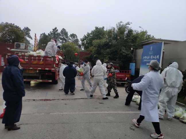 面对严峻的疫情形势,社区居民们积极响应“宅在家”“不出门”的防疫措施。然而随着“留守”家中的时间越长,大家日常生活物资短缺的问题逐渐产生。“买菜购物”也成为了困扰居民生活的一大的问题。2月27日,政府配发一份20斤的爱心蔬菜送达幸福社区。在社区统一安排下,刘井伟与其他的志愿者一起负责收集楼栋的住户的消费需求与收费登记,并逐一发放爱心蔬菜,保障了居民的基本生活需求,同时减少居民出行而产生交叉感染的风险。
