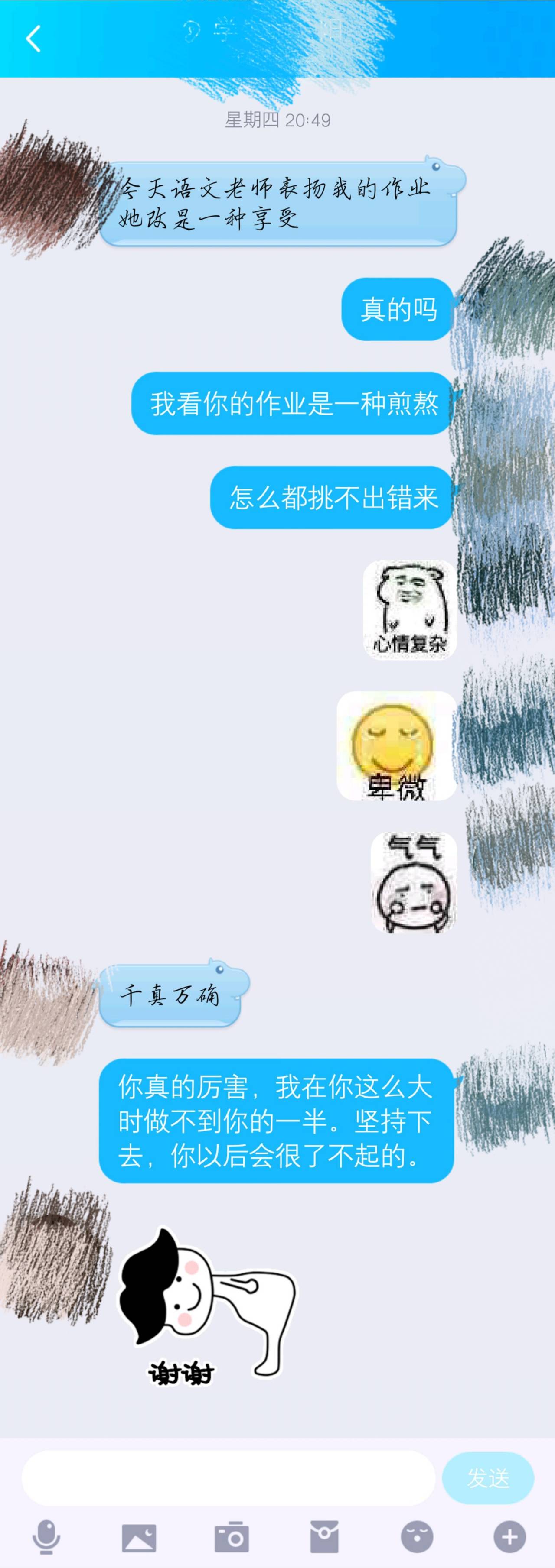 志愿者洪缘辅导的是一名六年级的学生小戴。小戴同学学习能力强且很自觉,不仅会按时完成课内作业,还能主动去看一些课外书或者课外资料。前段时间,小戴在背书方面遇到了困难,志愿者就和他分享了自己以前的背书经验,并加以鼓励。志愿者认为,在疫情期间,能通过自己微薄的力量帮助到需要帮助的人是一件很幸福,很充实的事情。