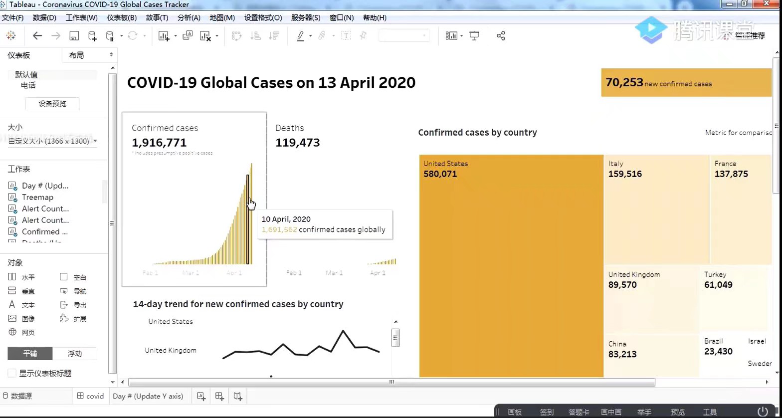 活动伊始,王丹对上一期的学习内容进行了简单的复习。随后,王丹详细为同学介绍了直方图、甘特图、盒形图、气泡图等多种Tableau中常用图表的原理和用途,并在Tableau软件上进行编辑演示,详细地讲解了制作图标的方法。