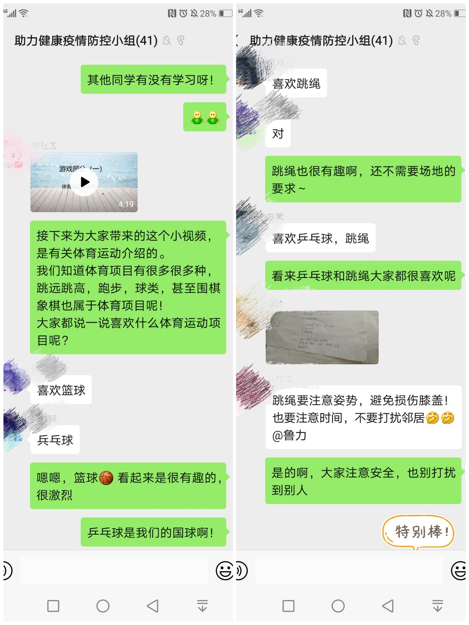 绘画的环节完成后,今天的志愿活动也结束了。居家生活,不可忽视体育锻炼的重要性。志愿者们在引导徐家棚的残疾人朋友们培养体育锻炼的优良习惯时,始终不忘强调运动的安全问题,即便志愿者们现在无法与他们见面,但是志愿者们仍然关心着这群与自己有着半年多交情的朋友们,而志愿者精神也在一次次的活动中得到弘扬与发展。