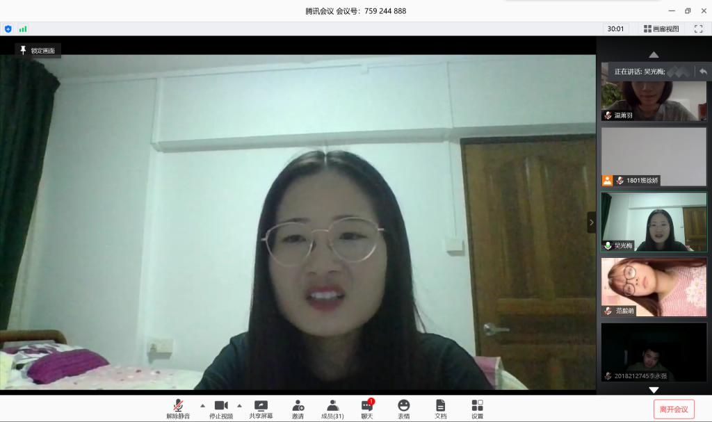首先,吴老师强调了在目前形势下,仍旧同学们要做好自我防护工作,不得松懈,合理调节居家学习心态。