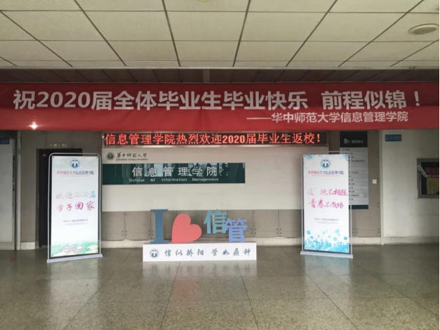 不仅切实解决学生困难,学院还积极营造温馨氛围,坚持关怀人文,布置教学楼毕业海报、横幅,为每位返校学生准备纯手工制作包装的大礼包,包括一枚刻有姓名的专属戒指和定制手提袋、纪念册、毕业衫、书签、雨伞,以及一个装有消毒湿巾和口罩的健康包。端午节当天,志愿者老师还为学生们送上粽子以示节日快乐。夏日炎热,志愿者教师仍坚持为“信管大家庭”的毕业生们送上最后一程。