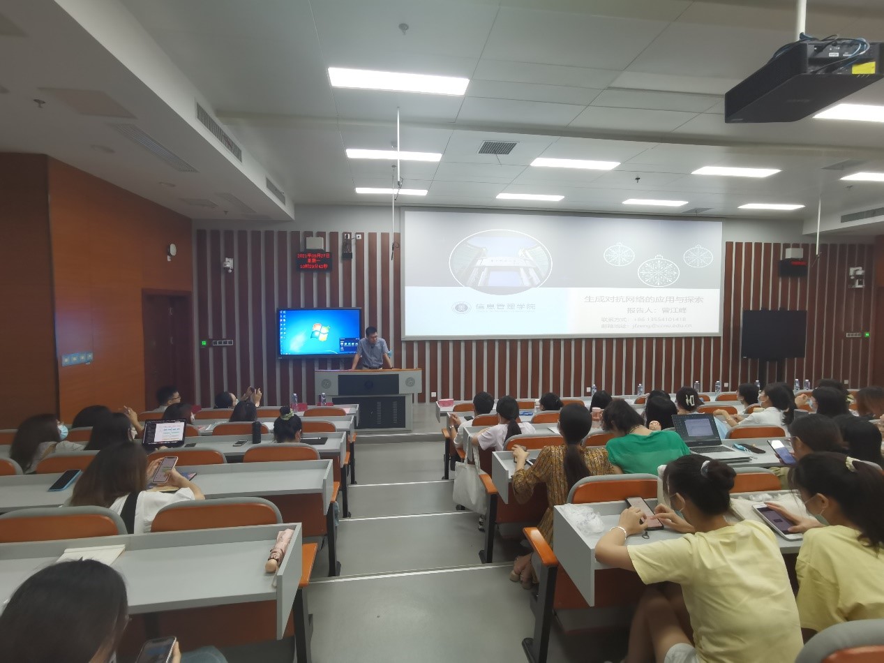 (通讯员 邓佳敏)讲座伊始,曾老师先通过汤姆克鲁斯的有趣案例引入生成对抗网络的技术。生成对抗网络GAN从简单分布映射到复杂分布,能够通过输入的样本产生可能的输出。模型通过框架中的两个模块:生成模型和判别模型的互相博弈学习产生相当好的输出。相比于传统的神经网络模型,GAN是一种全新的非监督式的架构,它包括了两套独立的网络,两者之间作为互相对抗的目标。该技术成熟后可生成人脸年龄图像,应用于助力诱拐儿童多年后重回父母身边、帮助警方搜捕隐匿多年的犯罪分子等方面。