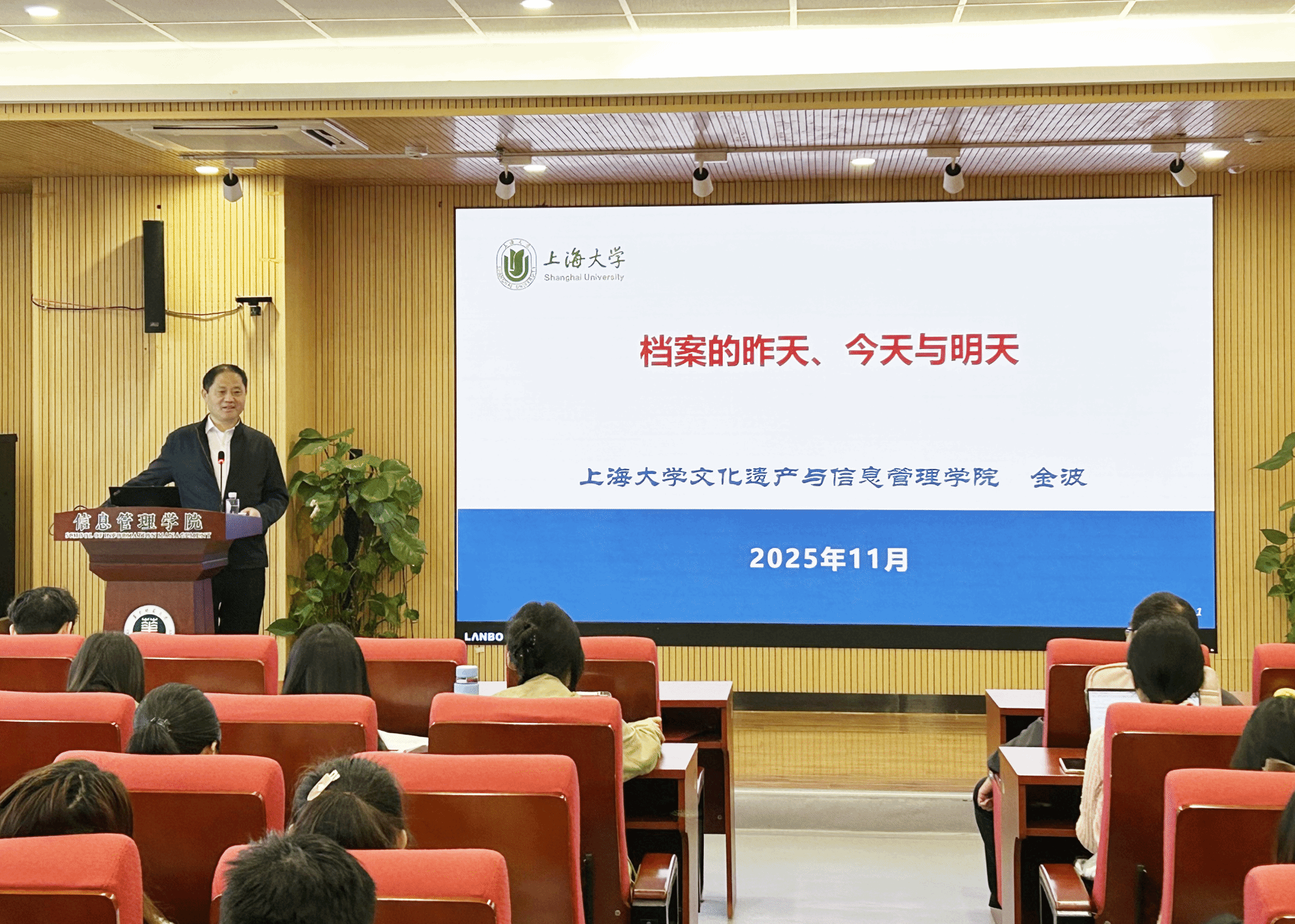 这场以“档案的昨天、今天与明天”为主题的讲座,是《信息资源管理研究》系列课程之一,不仅系统梳理了档案学的发展脉络,更实现了历史纵深、现实实践与未来趋势的有机串联。金波教授凭借扎实的理论功底、丰富的实践案例与前沿的学术视角,既清晰厘清了档案的本质内涵与核心价值,也为档案学科范式升级、档案数据应用潜能释放提供了明确方向。