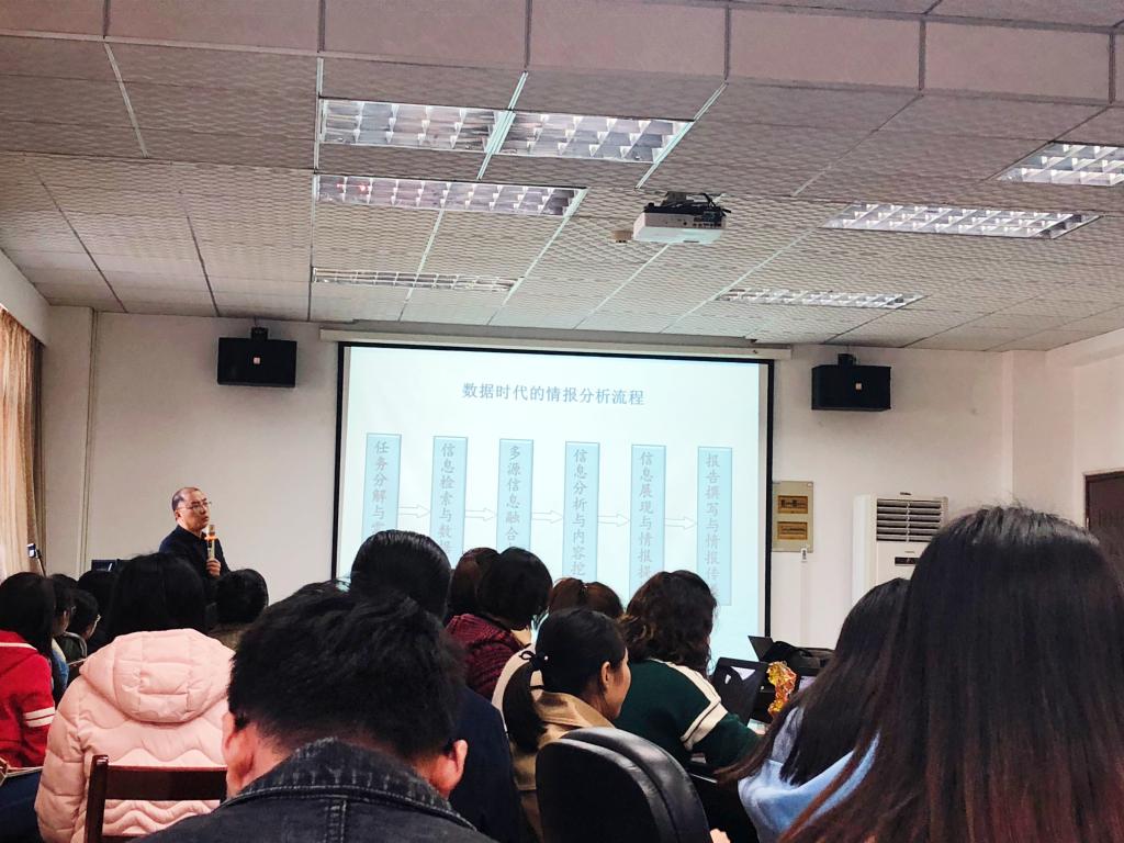 在情报方法体系这一层面上,化柏林教授从基于多维视角、基于学科来源、基于术语结构、基于方法属性、面向操作对象、基于应用主体、过程型方法体系以及面向情报任务等方面详细的讲解了情报方法体系的具体步骤以及科学方法。同时也依据新时代的情报分析的新特点,对大数据分析的新功能以及决策服务的转变进行了讲解。整个情报方法体系介绍融会贯通,让在座的师生了解了情报方法的发展以及体系结构。