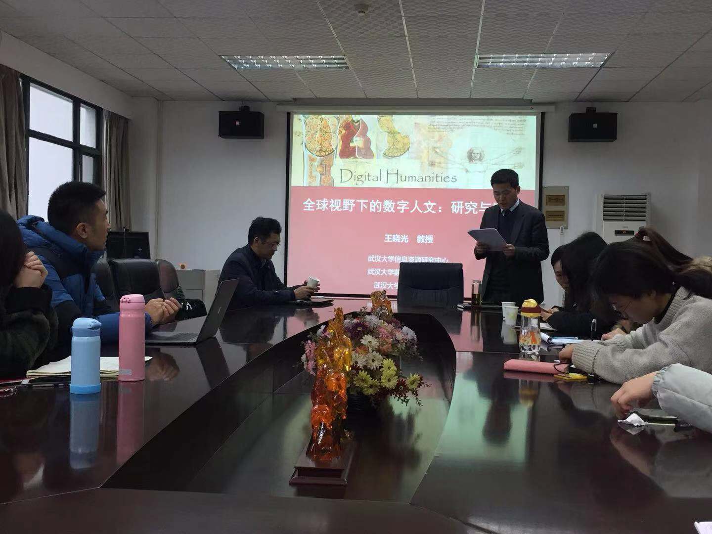 科学技术进步推动了人文科学、自然科学和社会科学的深入研究,促进三大学科研究领域的交叉融合,更是拓宽了图情专业的研究领域,其中数字人文成为图情领域重要研究方向。12月7日在上午,我院有幸邀请王晓光教授来我院开展了一场题为“全球视野下的数字人文:研究与实践”的讲座,本次讲座由曹院长主持,众多师生参与本次学术活动。