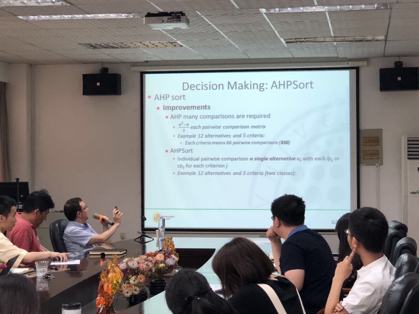 (通讯员何文瑾)2019年5月24日(周五)下午2:30,由华中师范大学研究生会主办,信息管理学院研究生会承办的学术讲座在我校9号楼918举行。本次讲坛的主题是Flexible MCDA Sorting: AHP FuzzySort,主讲嘉宾为Luis Mart I nez教授。