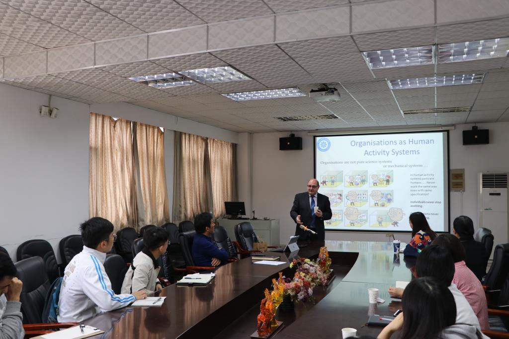 (通讯员 林晓晴)2019年10月23日上午,我院有幸邀请中山大学资讯管理学院院长教授于九号楼918会议室开展了题为“Change Management,Innovation and Technology Development”的主题讲座。本次讲座由李玉海院长主持,各届学生代表参与。