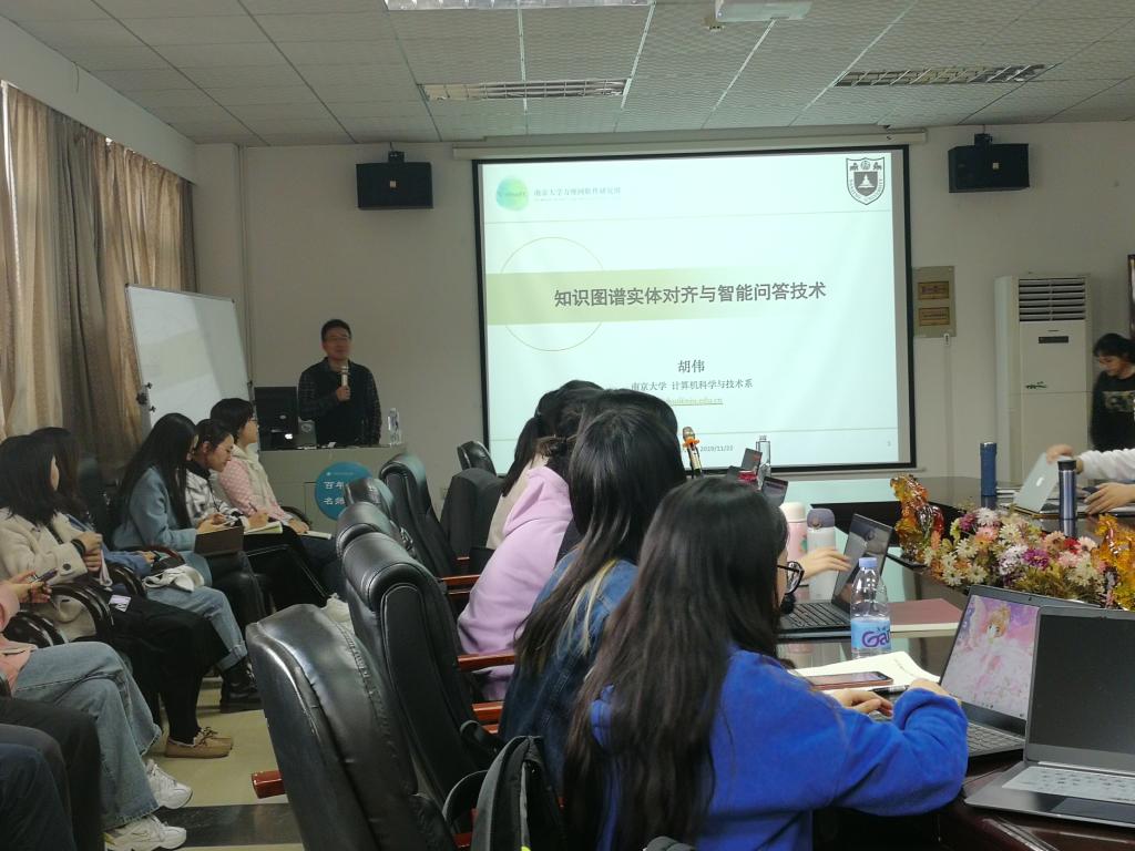(通讯员崔丽丽)2019年11月22日下午,我院有幸邀请南京大学胡伟教授为我院师生开展了名为“知识图谱实体对齐方法研究”的讲座。此次讲座由曹高辉副院长主持,各届学生代表参与。