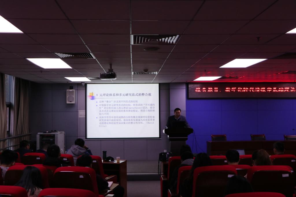 讲座伊始,王琳教授首先带领在座师生简要回顾了情报学学科理论的发展史,迄今已走过百余年的发展历程。他认为当前ISchools的研究与情报学的教育变革相辅相成。其次,在此基础上,他以情报学的元理论和多元范式研究为主线,对元理论的相关概念进行论述。王琳教授指出,元理论可以用来发展情报学,情报学学科理论的基础是元理论和研究范式。而后,他介绍了13种情报学元理论,并重点解读了情报学中三种重要的元理论与研究范式。其中包括实证主义与系统/物理范式、认知建构主义与认知范式以及社会建构主义与领域分析范式。在重点阐述以上三种情报学元理论与研究范式中,他认为,实证主义与系统/物理范式目前过于关注文献或物理媒介所记录的知识表达,忽略了信息用户;认知建构主义是情报学最典型的代表;他由此引入意义建构论的隐喻模型,并从三点阐释了意义建构论的理论启示。