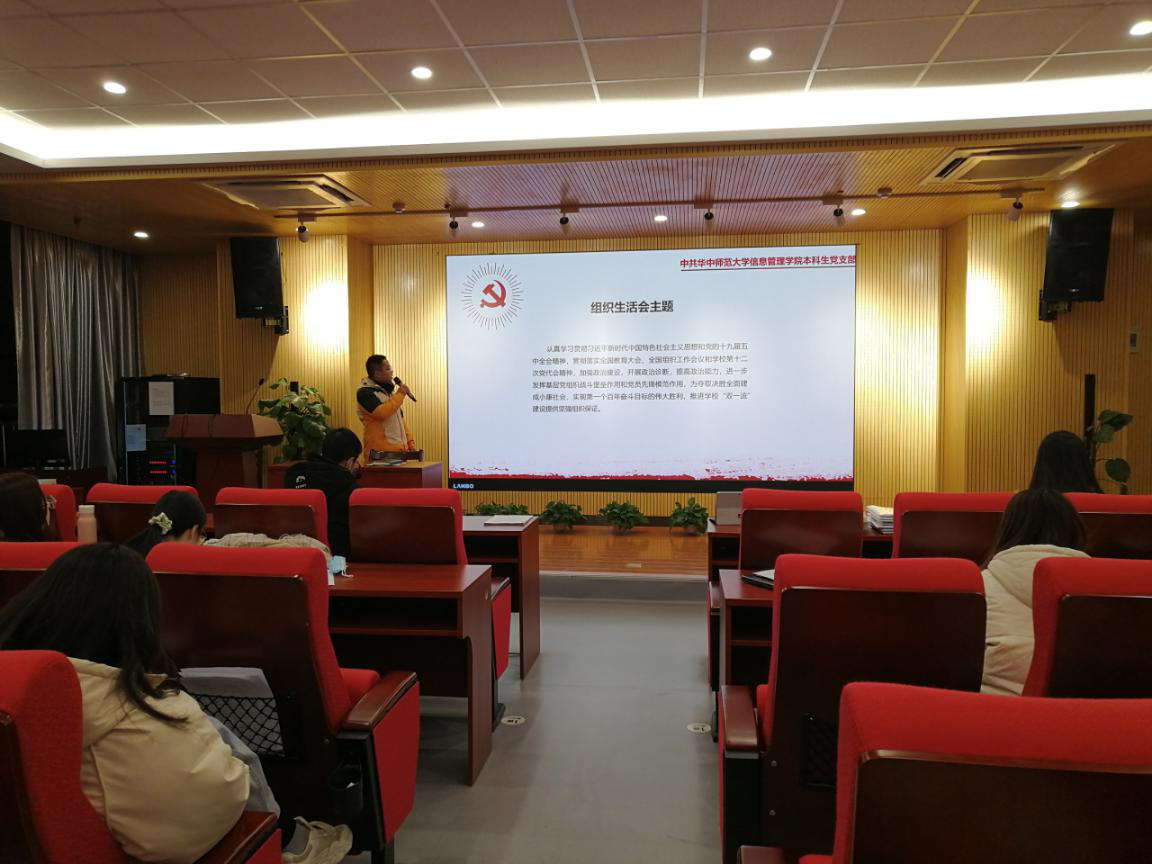 (通讯员 李淼 潘丽妃)2021年1月8日,中共华中师范大学信息管理学院本科生党支部2020年度组织生活会与民主评议党员大会在学院10001会议室成功举行,大会由党支部书记卢旺同志主持,支部全体党员同志参会。