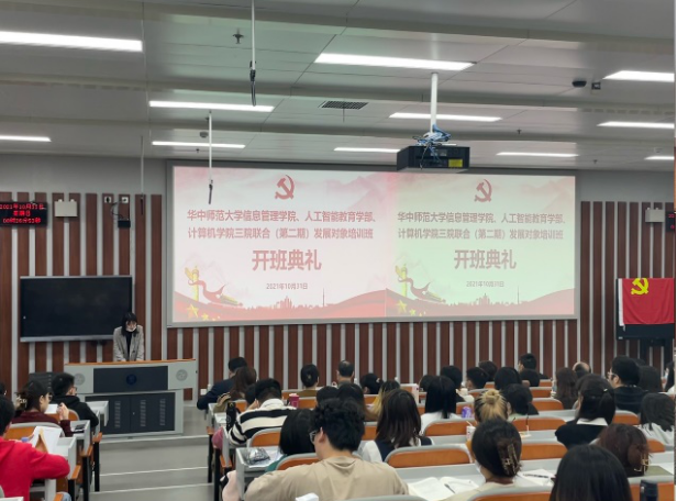 (通讯员 明昕宇 魏锦钰)10月31日上午,信息管理学院、人工智能教育学部、计算机学院联合分党校第二期发展对象培训班开班仪式在南湖综合楼N207顺利举行。信息管理学院党委书记王雨露、人工智能教育学部正处职组织员盘华、计算机学院党委副书记王坤、班主任魏锦钰、信息管理学院带队老师叶孔森、人工智能教育学部带队老师杨先顺、计算机学院带队老师蔡庆昱出席典礼,来自信息管理学院、人工智能教育学部、计算机学院的共164名培训学员参加了本次开班典礼。本次典礼由班主任魏锦钰主持。