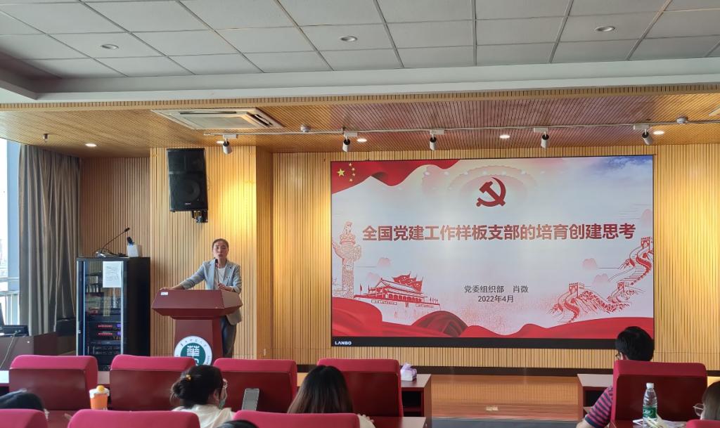 接着,肖微就“全国党建工作样板支部的培育创建思考”这一主题开展专题培训。她从高校党建的新变化、党支部建设面临的现实问题以及样板党支部培育创建的努力方向三个方面详实地介绍了党支部建设工作。结合全国党建工作样板党支部的培育创建工作经验,强调要注重样板党支部的“创”“建”“评”,做到“夯基础,强内涵,拓格局,上层次”。
