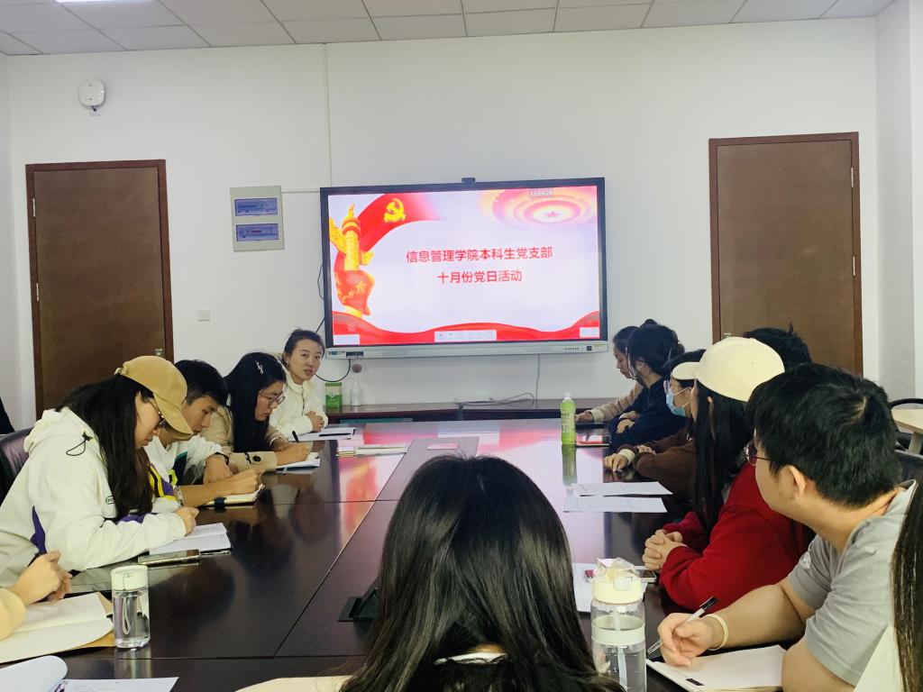 接着,信息管理学院本科生兼职辅导员胡凯华同志进行自我介绍,并与与会党员同志进行简单交谈。肖丽霞同志强调我院本科生党支部现有工作内容有组织和宣传两大板块,支部各位党员同志要各司其职,相互配合,着重做好材料收集整理工作,携手推进党支部工作的顺利开展。