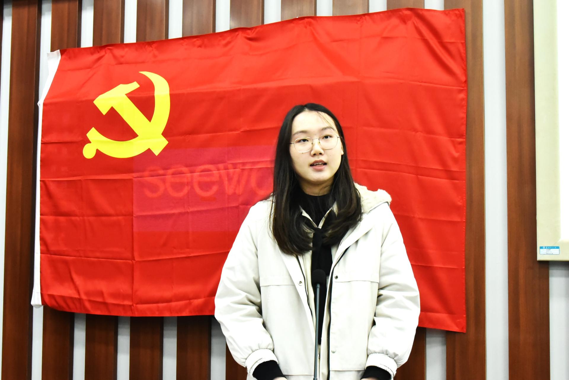 随后,信息管理学院2019级本科生李金蔓作为参训学员代表进行发言。她首先对关心学员们的学校、学院各级党组织表示感谢。她结合二十大报告中对青年的要求,指出预备党员们要坚定不移跟党走,敢想敢为有担当,争做新时代优秀青年党员。同时,她也代表所有参训学员向党组织保证:更加努力,坚定理想信念,做到思想进步、政治可靠,成为祖国和革命事业的栋梁之才;提高党性修养,严格要求自己,培养和树立良好的政治品格;不忘初心、牢记使命,争做新时代合格的青年党员,做社会主义合格建设者和接班人。