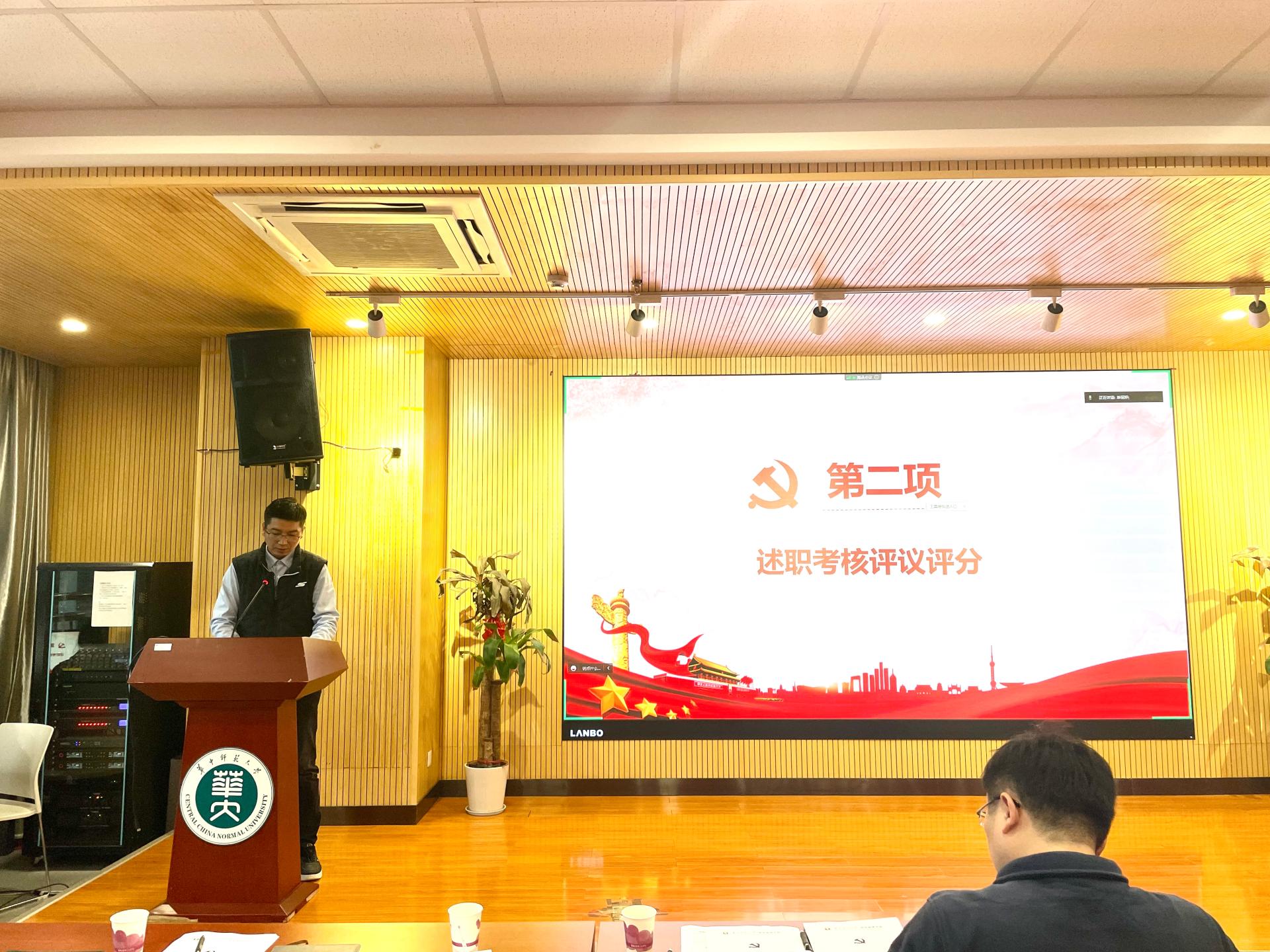 本次述职评议考核采取现场述职和书面述职相结合的方式进行。大数据管理与应用系教工党支部书记武川、行政与退休教工党支部书记王丹、博士生党支部书记涂秋阳、2020级硕士研究生情报学档案学党支部书记周皙、2021级硕士研究生情报学档案学党支部书记封菊馨、2022级硕士研究生管理科学与工程党支部书记张进澳、本科生党支部书记蒋可鸣等7位支部书记进行现场述职,其他11位支部书记进行书面述职。