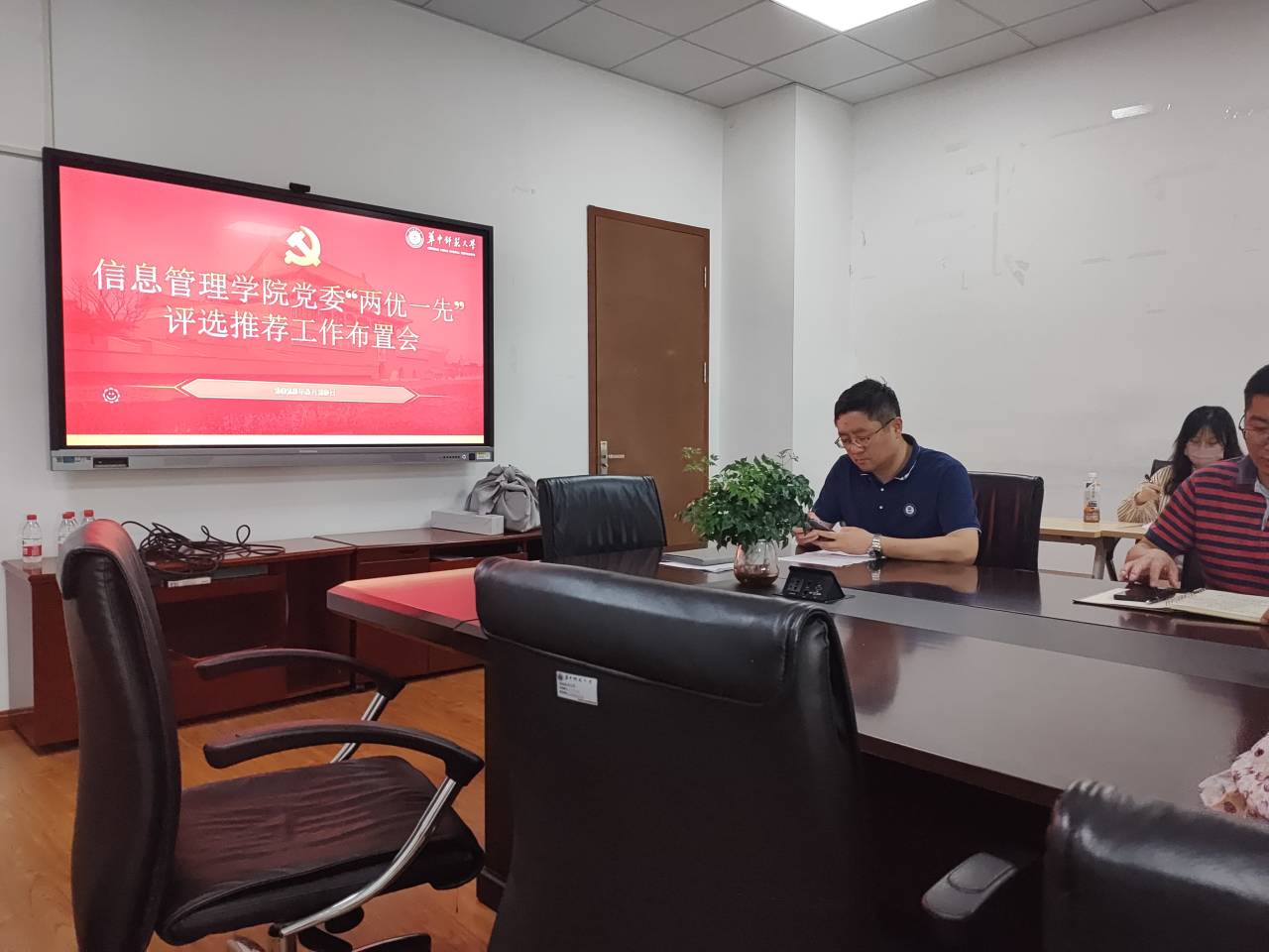 (通讯员 张进澳)为推进学习贯彻习近平新时代中国特色社会主义思想主题教育走深走实,激励基层党组织和广大党员拥护“两个确立”、增强“四个意识”、坚定“四个自信”、做到“两个维护”,信息管理学院党委结合学校关于开展“两优一先”评选推荐工作要求,于5月29日下午,在南湖综合楼10003室召开 “两优一先”评选推荐工作部署会,学院党委委员和师生党支部书记参加,会议由党委副书记王涛主持。