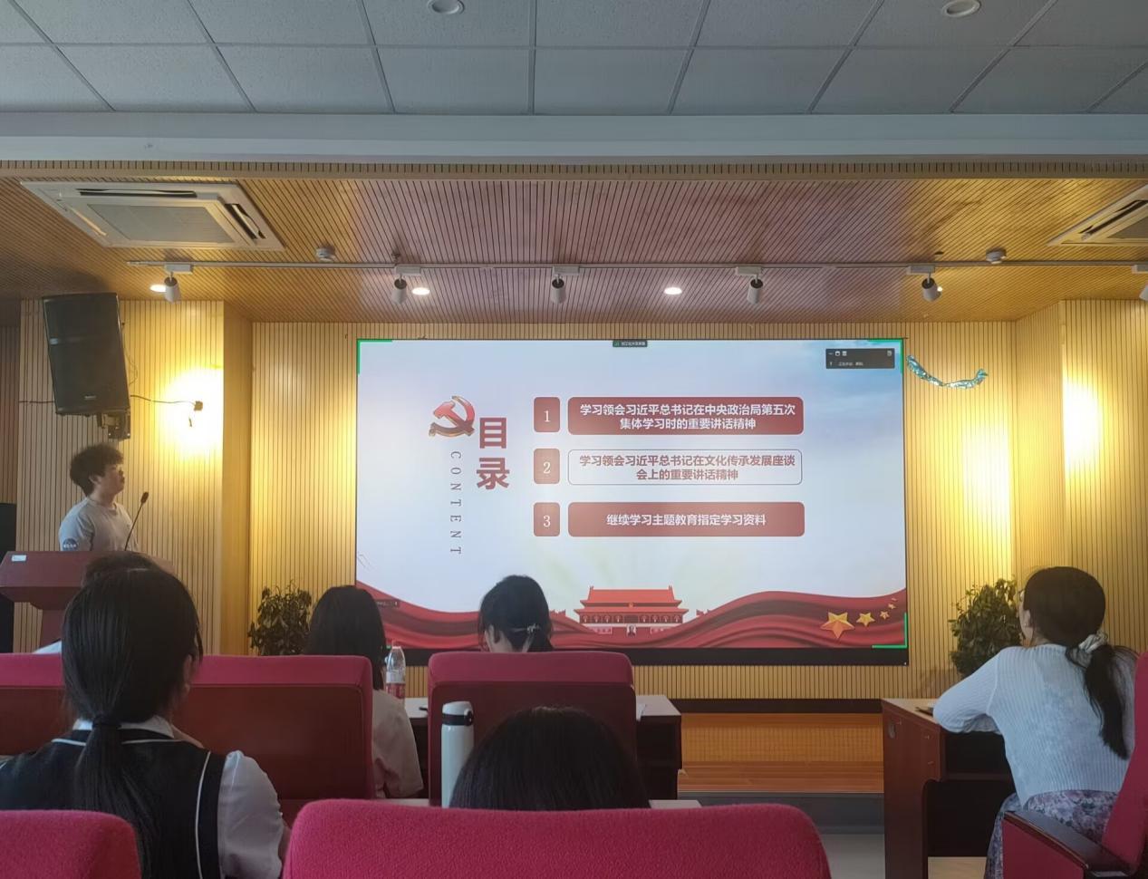 会议伊始,蒋可鸣同志带领支部全体同志重温入党誓词。随后,刘坤华同志领学了习近平总书记在中央政治局第五次集体学习时的重要讲话精神。刘坤华同志介绍,习近平在主持学习时强调,教育兴则国家兴,教育强则国家强。建设教育强国,是全面建成社会主义现代化强国的战略先导,是实现高水平科技自立自强的重要支撑,是促进全体人民共同富裕的有效途径,是以中国式现代化全面推进中华民族伟大复兴的基础工程。他强调,青年大学生作为将来的社会主义建设者和接班人,应立志德智体美劳全面发展,在社会主义现代化建设中成为可堪大用、能担重任的栋梁之才,确保党的事业和社会主义现代化强国建设后继有人。