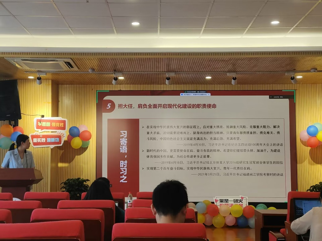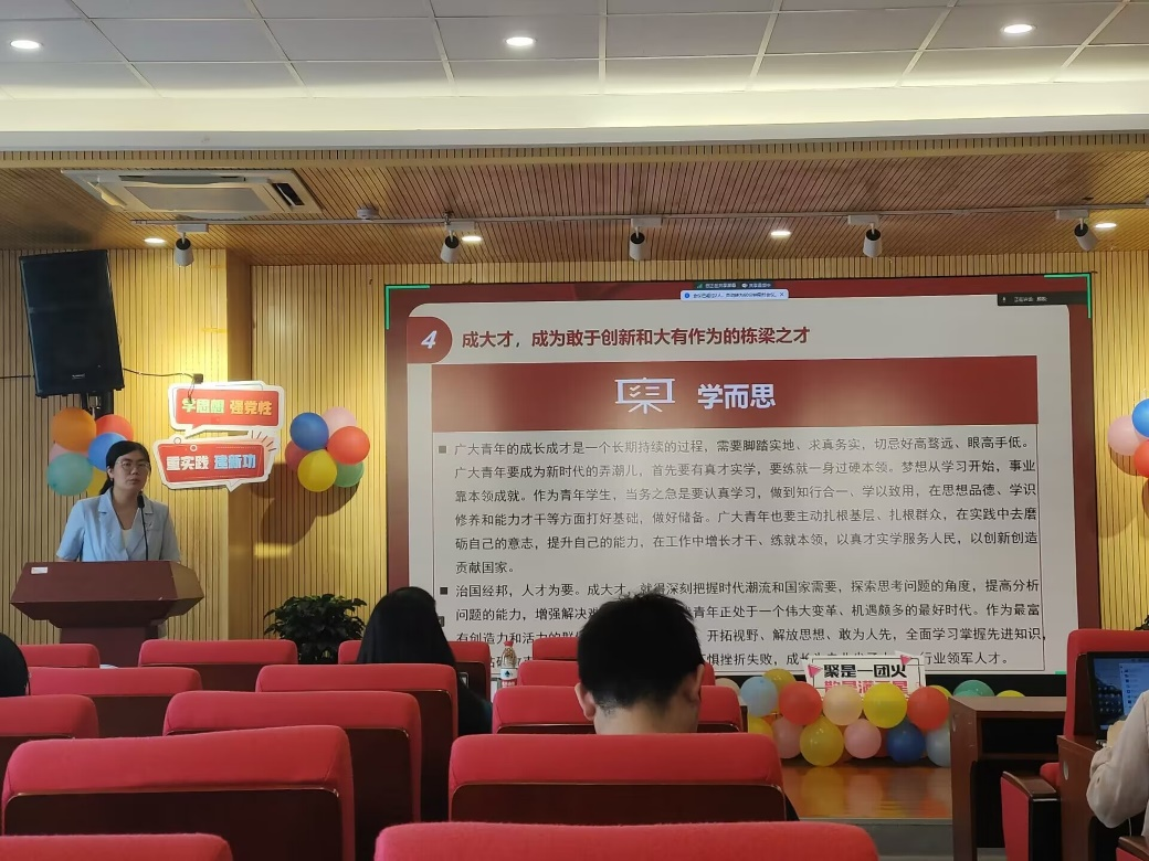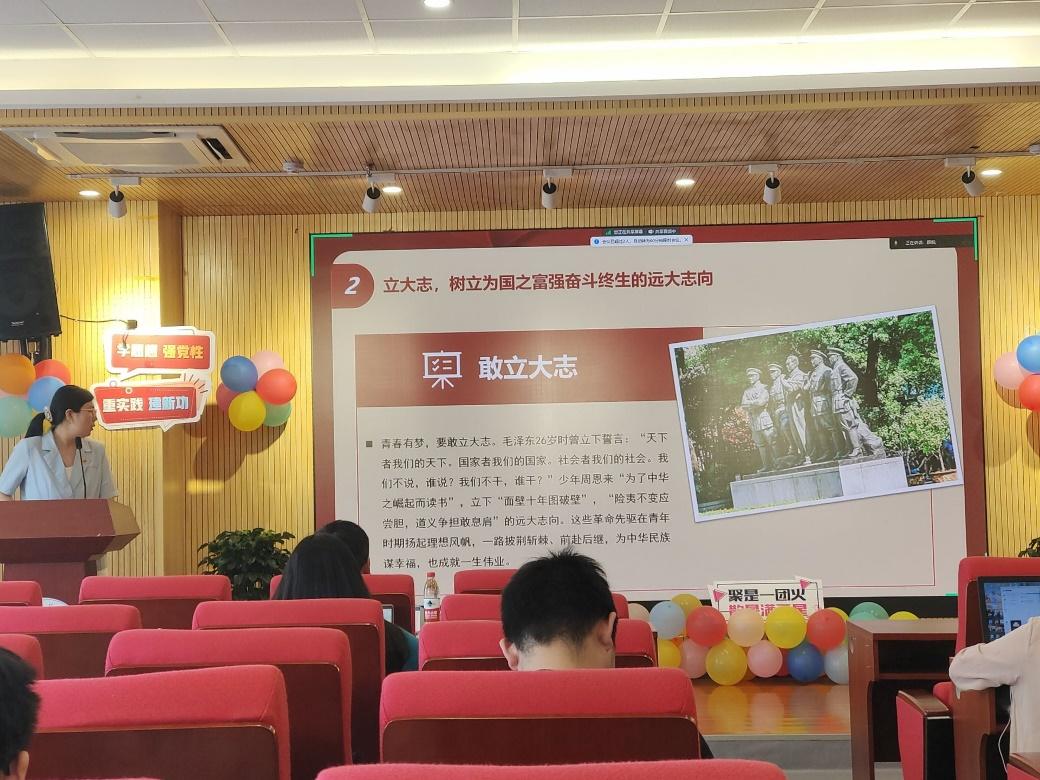 蒋可鸣同志带领大家学习了习近平总书记的相关讲话,领悟讲话精神,树立远大理想,她强调远大志向是人生航向的“指明灯”,是建功立业的“方向标”,是砥砺前行的强大精神动力。她还通过革命先驱所言所行鼓励大家要敢立大志,让青春在创新创造中闪光。