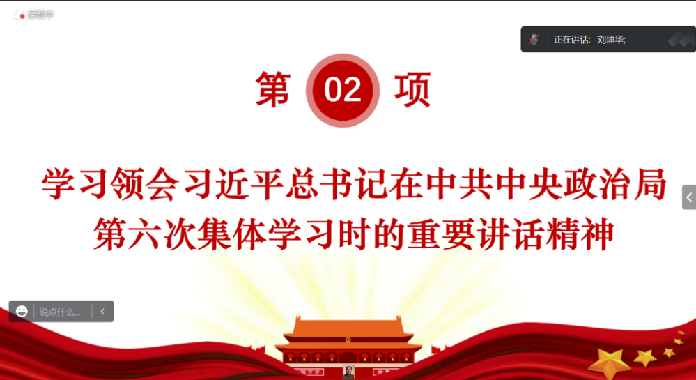 随后,刘坤华同志带领支部党员深刻学习领会习近平总书记在中共中央政治局第六次集体学习时的重要讲话精神和习近平总书记同团中央新一届领导班子成员集体谈话时的重要讲话精神。习近平总书记指出,要及时科学解答时代新课题。时代是思想之母,实践是理论之源。一切划时代的理论,都是满足时代需要的产物。作为青年党员,我们更要深刻把握“两个确立” 自觉践行“两个维护”。