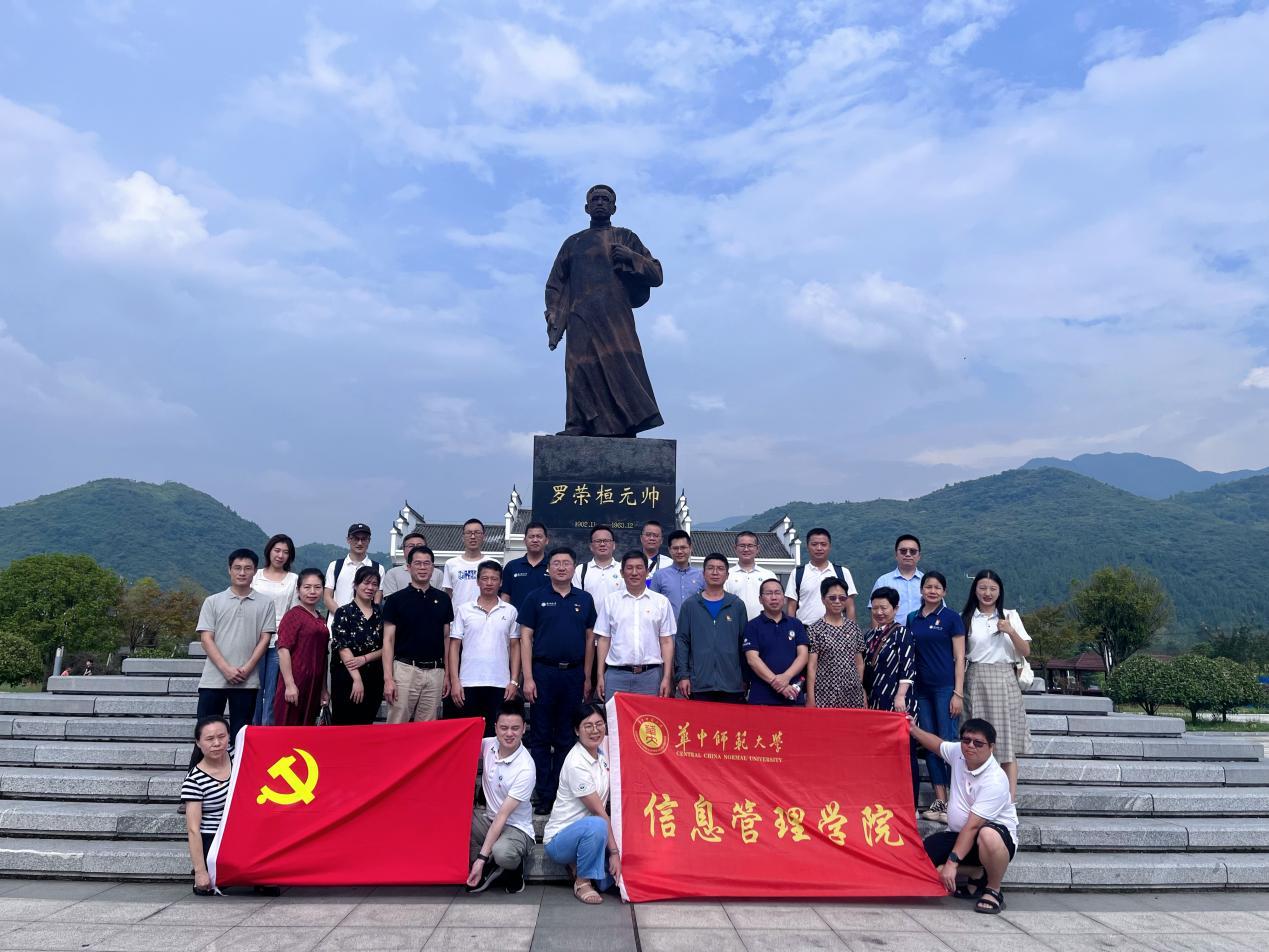 8月26日下午,为学习贯彻习近平新时代中国特色社会主义思想主题教育,信息管理学院教师来到湖北通城红色文化教育基地,先后走进秋收暴动纪念馆、红河革命烈士纪念碑、英雄母亲黄菊妈陵园,沉浸式体验红色之路,用脚步丈量革命热土,以学铸魂,筑牢信仰之基、补足精神之钙、把稳思想之舵。