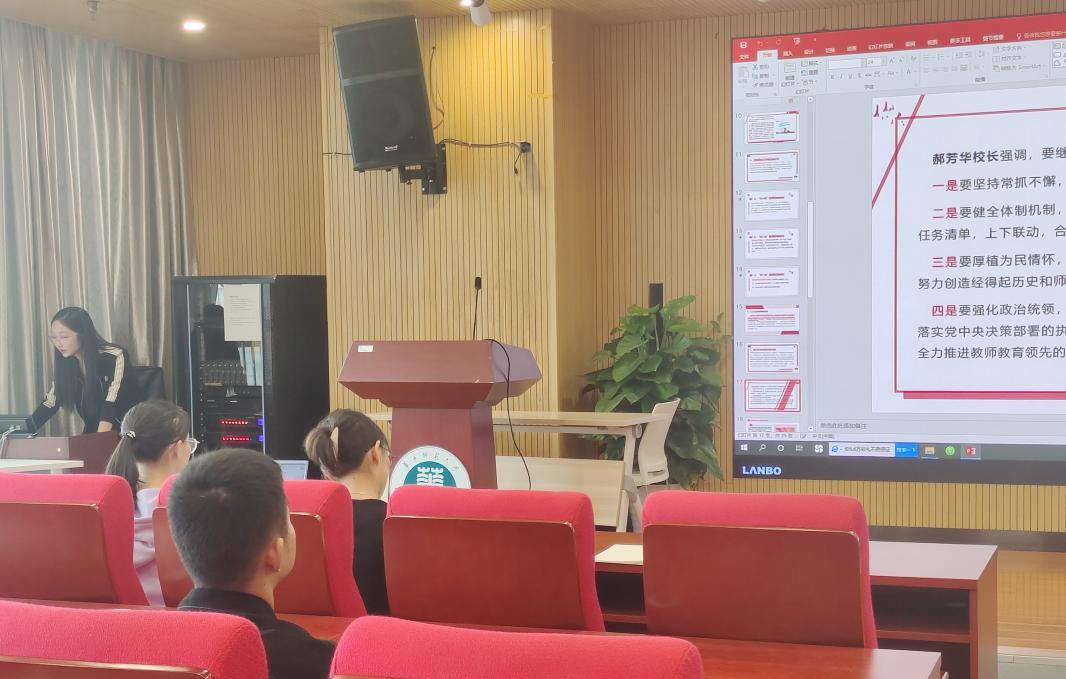 会议第三项,全体党员同志学习习近平总书记教师节重要指示精神。习近平总书记指出要大力弘扬教育家精神,培养高素质教师队伍,营造全社会尊师重教浓厚氛围,为强国建设民族复兴伟业作出新的更大贡献。刘奥同志借此呼吁各位党员同志大力弘扬教育家精神,自信自强、踔厉奋发,为强国建设、民族复兴伟业作出新的更大贡献。