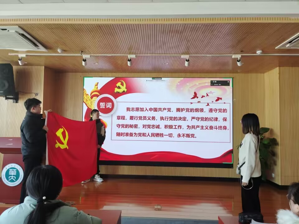 支委会报告对发展对象的审查情况,并征集了党员和群众的意见。经过支委会集体讨论,盛思瑶等六名同志的政审合格,支部大会讨论通过接收他们为预备党员。与会党员对盛思瑶等六名同志的入党问题进行了讨论并发表了意见。王乃玉同志认为李久肖同志在学生工作中表现优秀,具有良好的群众基础,体现了党员积极向上的风貌;其他党员也纷纷表达了对其他发展对象的支持和肯定。经过与会正式党员的无记名投票表决,大会一致同意接收盛思瑶等六名同志为预备党员。蒋可鸣同志为新党员颁发政治生日卡。新党员面向党旗庄严宣誓,表达了为共产主义事业奋斗终身的坚定信念。