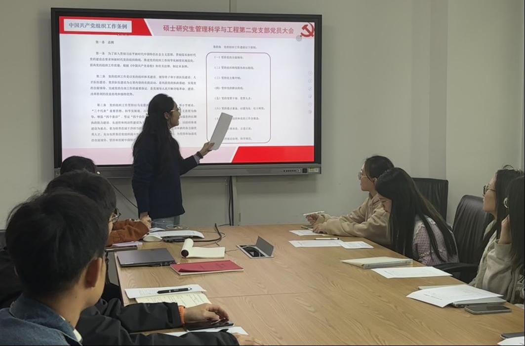 会议伊始,党支部书记刘奥同志带领大家学习了《中国共产党组织工作条例》与《中国共产党支部工作条例(试行)》等规章制度,重点介绍了党的组织工作遵循的九项原则、党支部的基本任务等内容,进一步加强了理论武装,深化了思想认识。