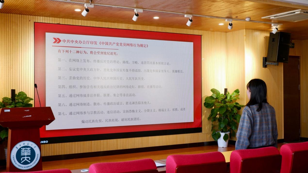 第二部分,王慧婷同志带领全体党员学习贯彻《中国共产党巡视工作条例》及《中国共产党党员网络行为规定》。党员同志们共同学习了《条例》的修订背景及意义,还领悟了其重要思想。与此同时,党员同志们明确了十二种违反党纪的网络行为。网络行为是党员行为的重要组成部分。蔡星星同志表示将严格遵守党的纪律和国家法律法规,坚决杜绝在网络上发表不当言论、传播谣言、泄露机密等违反党纪的行为。