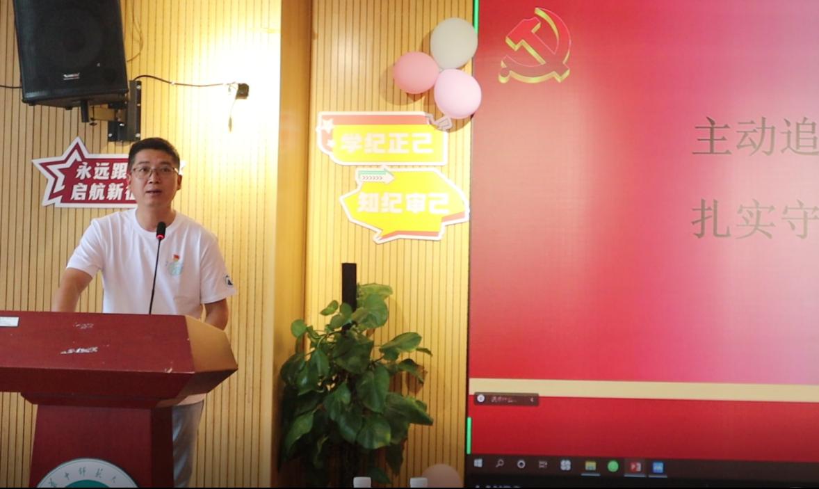 王涛对毕业生党员同志在过去四年中的成长以及做出的贡献给予了充分肯定,并寄语毕业生党员同志,要在未来的学习、工作单位中继续发光发热、有所作为,充分发挥党员的带头模范作用。随后,王涛强调“党纪是中国共产党的生命线”,对于青年党员同志而言,要学纪、知纪、明纪、守纪,既要把握“高线”,也要严守“底线”,由此引入党纪教育内容。