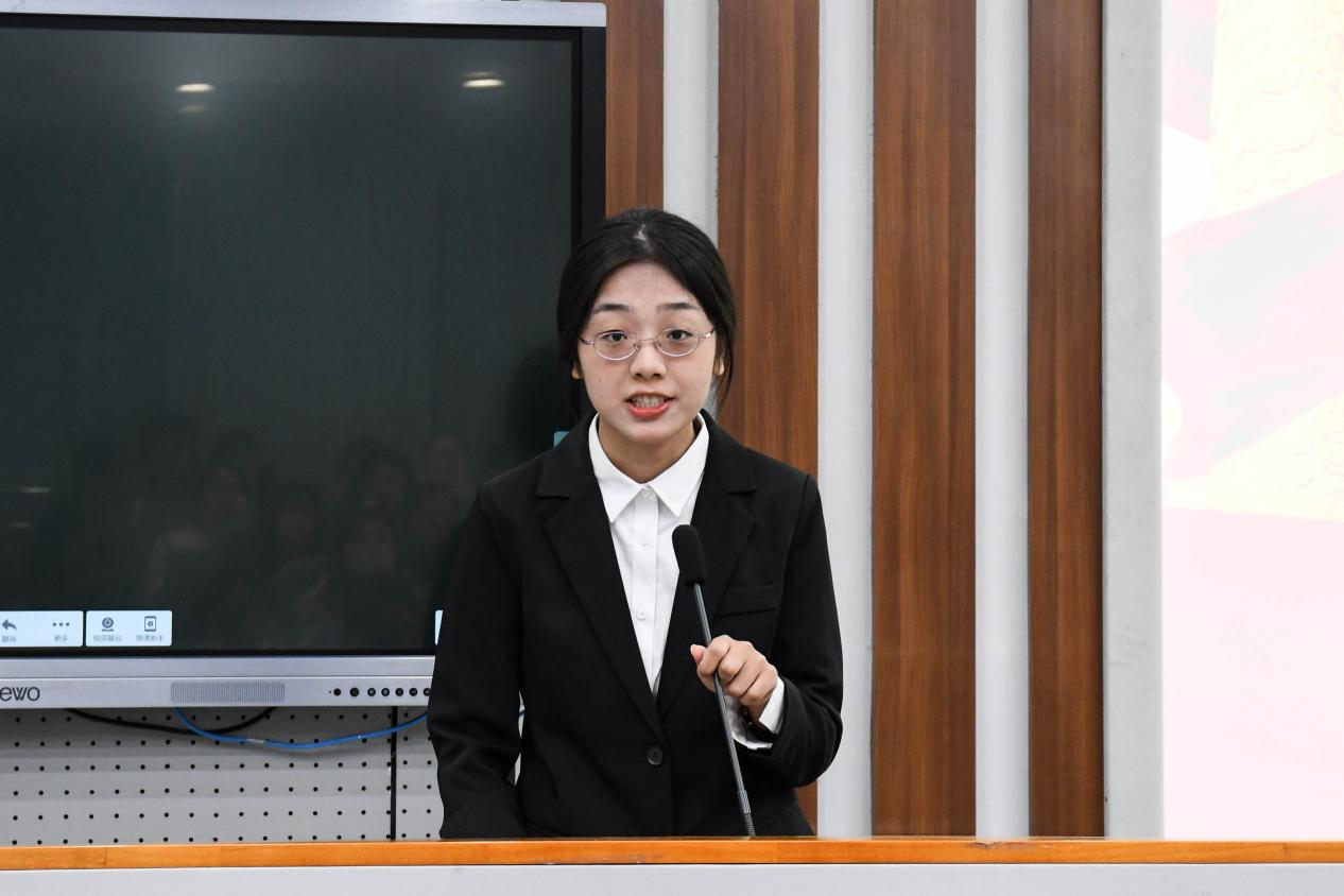 学员代表、信息管理学院2021级本科生周钰同学做表态发言。她结合自身经历,积极规划未来奋斗方向,勉励自己怀抱梦想并脚踏实地,永葆初心,将一腔赤诚奉献给党。她倡议,学员们以习近平新时代中国特色社会主义思想为指引,在培训学习中严守党的纪律,坚定理想信念,锻炼过硬本领,力争为实现中国式现代化贡献青春智慧,积极为实现共产主义理想而奋斗终身。